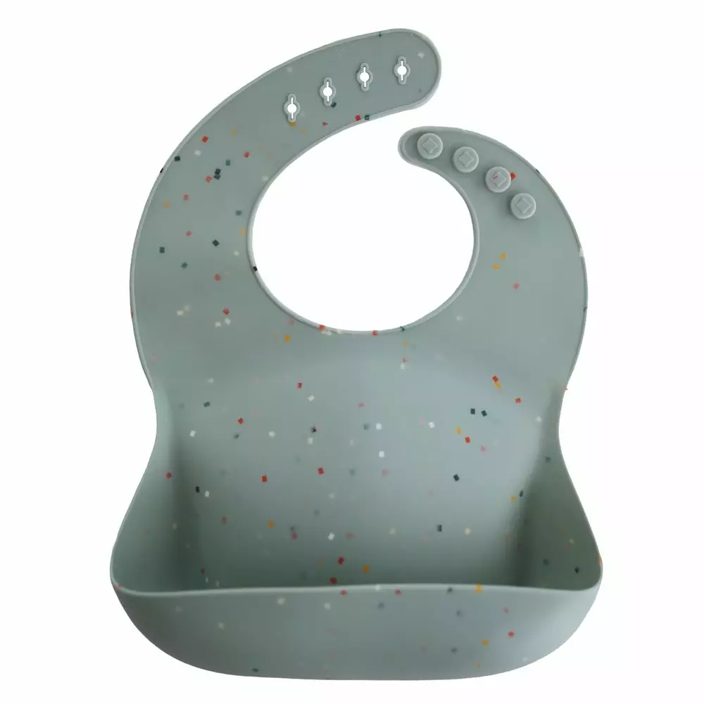 Mushie silikoninen ruokalappu on tyylikäs ja pehmeä ruokalappu lapselle. Elintarvikelaatuisesta silikonista valmistettu ruokalappu suojaa lasta ruokaillessa, ja kätevä kouru kerää tippuneet ruoat. Ruokalappu saadaan säädettyä niskasta sopivaksi.