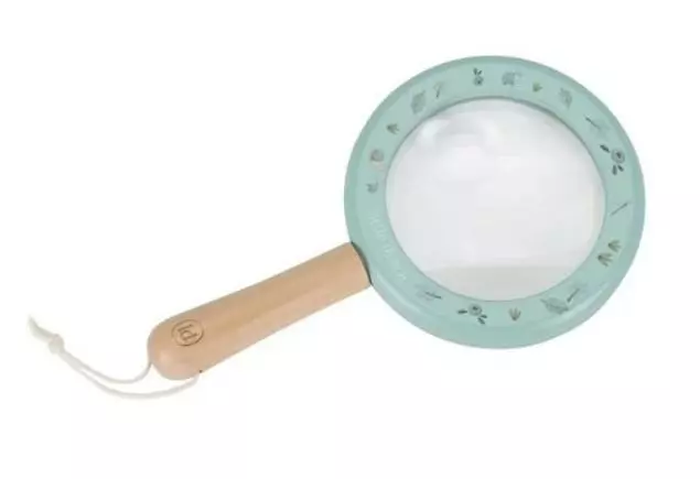 Little Dutch suurennuslasi on valmistettu puusta, ja siinä on pieni lenkki päässä, josta sen saa roikkumaan esim. reppuun. Suurennuslasilla on hauska tutkia esim. hyönteisiä tai kukkia. Suurennuslasissa on erikseen myös sisäänrakennettu minilinssi, jolla saa vielä tarkemmin tutkittua pieniä asioita.