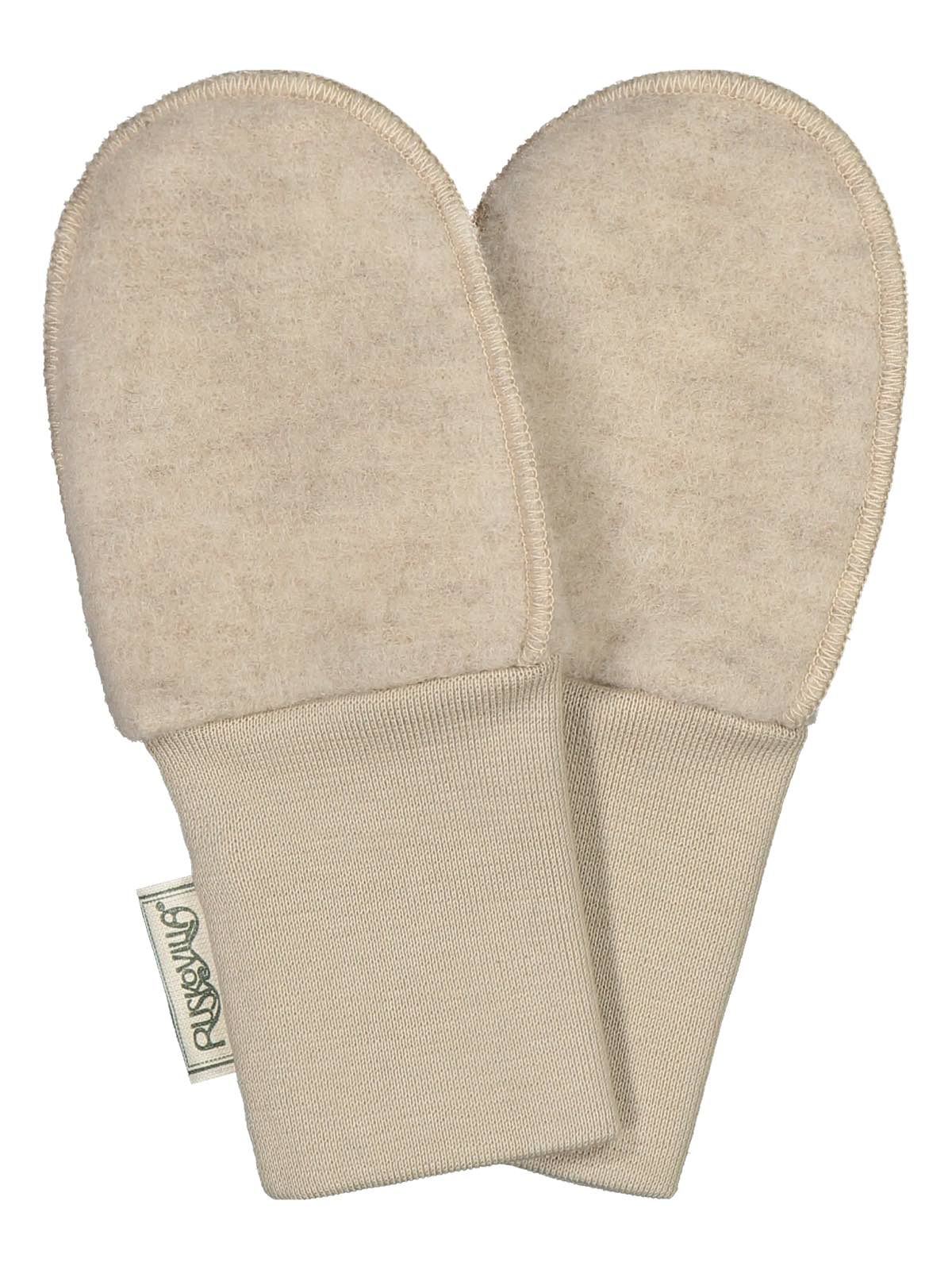 Ruskovilla villafleece-ensilapaset ovat pehmeästä luomumerinovillafleecesta valmistetut peukalottomat lapaset vauvalle. Lapasissa on pitkä luomupuuvillainen resori, jotta ne pysyvät hyvin vauvan kädessä. Pehmeäksi harjattu villaneulos tuntuu untuvaisen pehmeältä ihoa vasten.
