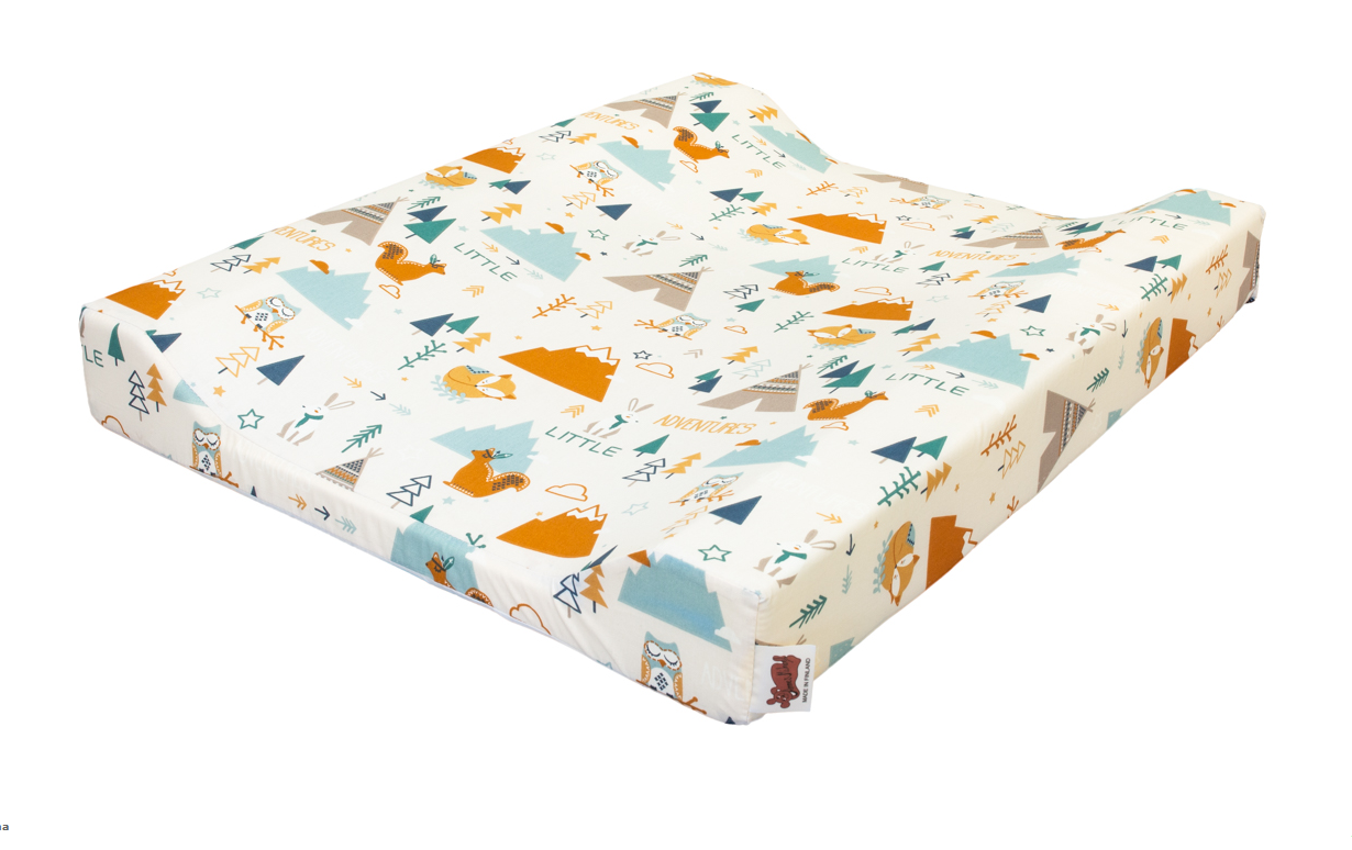 Anne&Mikael hoitoalusta 50 x 63 cm on reunoista muotoiltu hoitoalusta, jossa on akryylimuovitettu puuvillakankainen päällinen. Kangas hylkii kosteutta. Sisus on pehmeää vaahtomuovia.