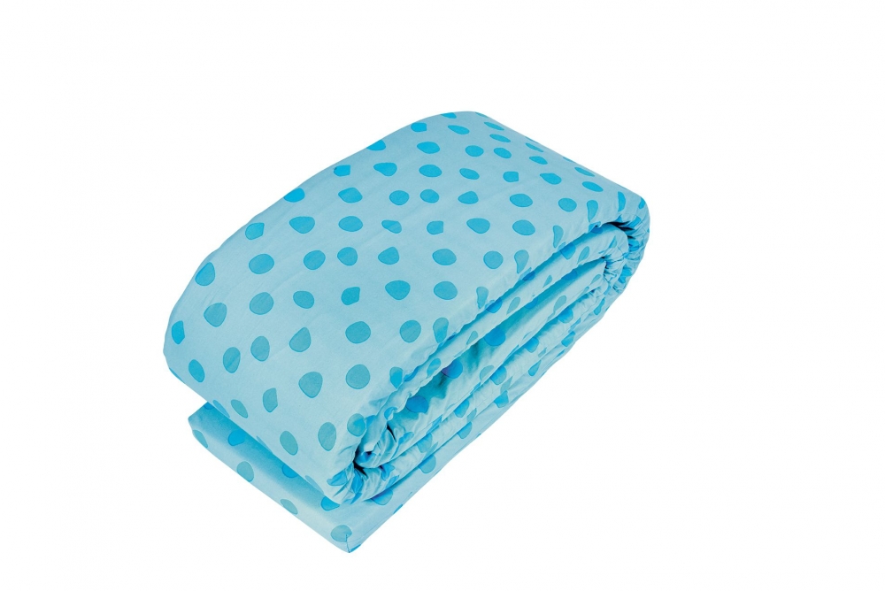 Baby Dan reunapehmuste pinnasänkyyn on paksu ja tukeva pehmuste, jossa on kaunis ja neutraali päällinen. Vaaleansinisessä pohjassa on isoja tummemman sinisiä palloja. Reunapehmuste sopii 120 x 60 cm kokoisiin pinnasänkyihin.