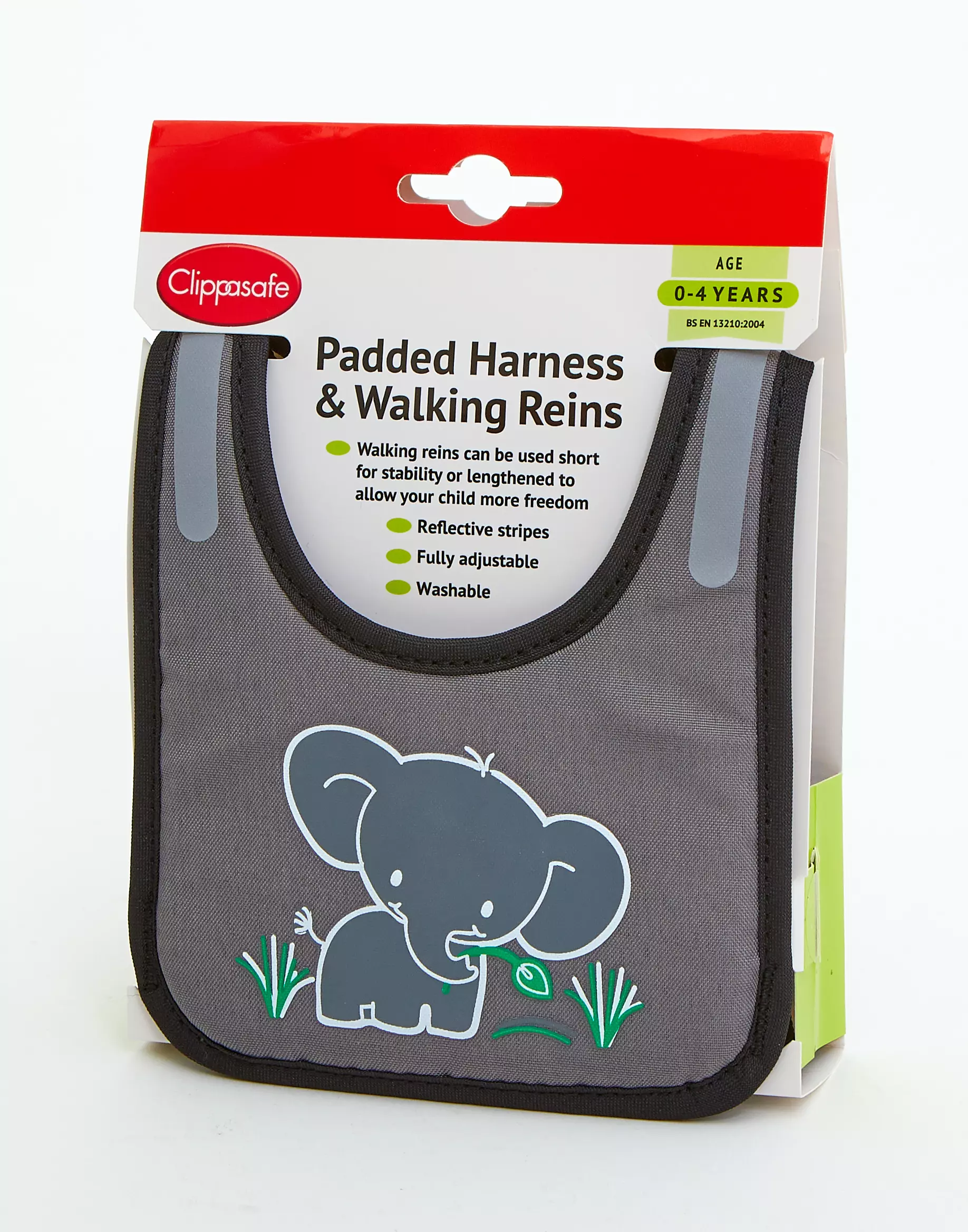 Clippasafe topatut ja heijastavat valjaat ovat kätevä varuste, kun lapsi opettelee kävelemään ja vanhempi saa pidettyä lapsesta kiinni. Pehmustetut turvavaljaat saadaan kiinnitettyä helposti lapsen päälle ja ne säätyvät lapsen koon mukaan. Valjaissa on nauha vanhemmille, jotta pienen lapsen kävellessä hän ei pääse juoksemaan yht'äkkiä karkuun.