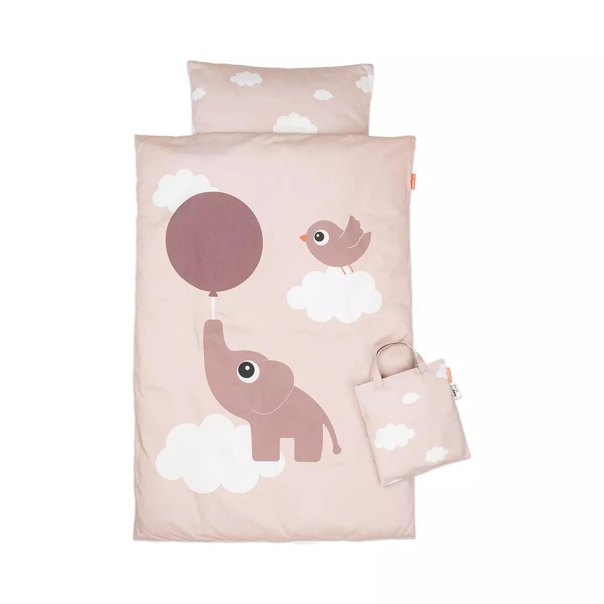 Done by Deer Elphee int the clouds Junior lakanasetti 100 x 140 cm on kaunis pussilakanasetti, jossa seikkailee suloinen Elphee norsu. Pakettiin sisältyy pussilakana ja tyynyliina, joissa on laadukkaat ja turvalliset YKK-vetoketjut. Lakanasetti on pakattu kätevään kagngaskassiin, joka on samaa kuosia lakanoiden kanssa.