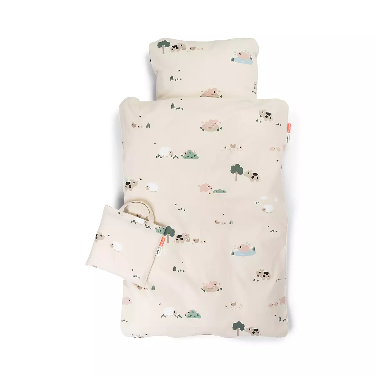 Done by Deer Tiny Farm Junior lakanasetti 100 x 140 cm on kaunis hiekan värinen pussilakanasetti, jossa seikkailee suloiset farmin asukit. Pakettiin sisältyy pussilakana ja tyynyliina, joissa on... Lue lisää