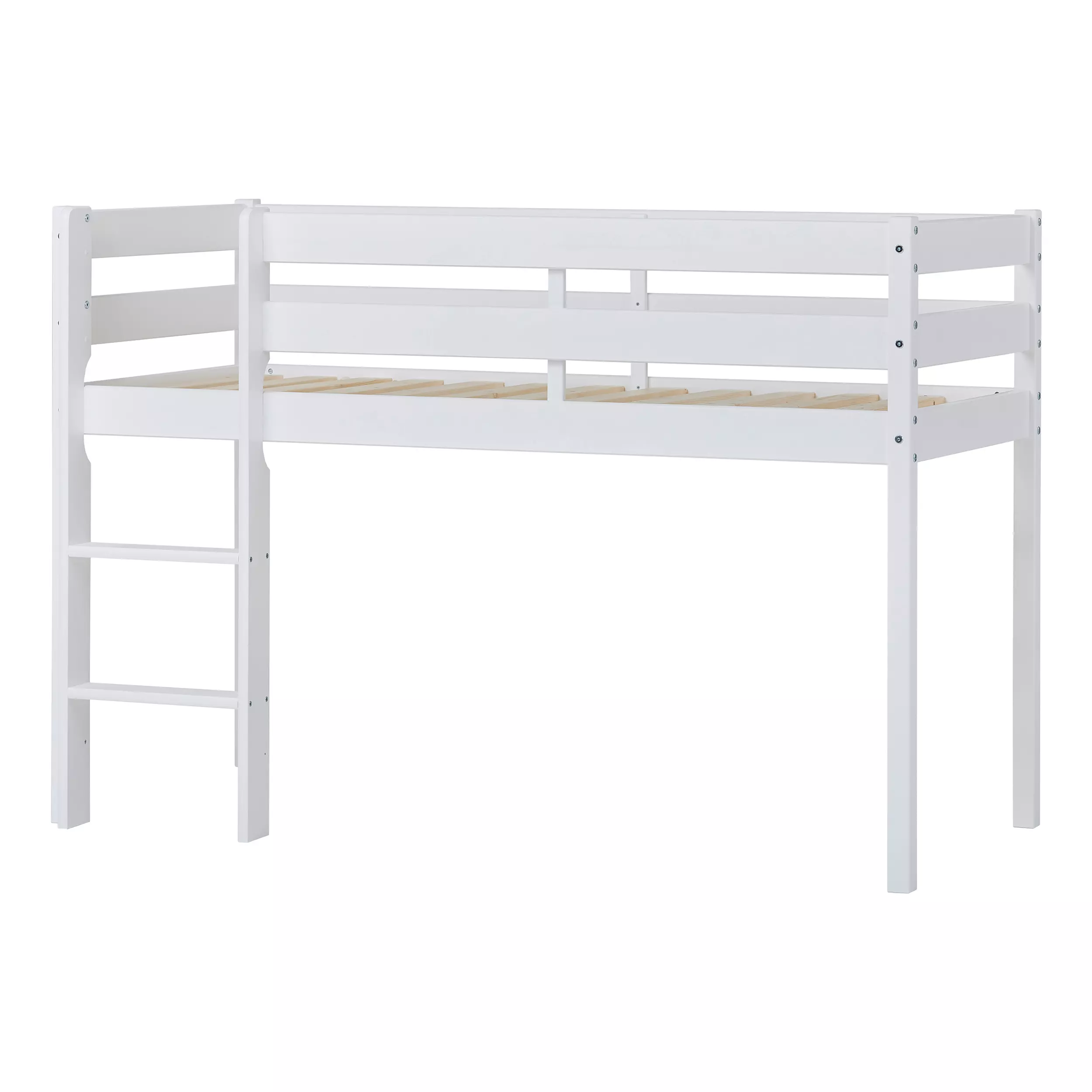Puolikorkea sänkyMateriaali: FSC® (FSC-C109484)-sertifioitu mäntyPainoraja: 60kgMitat: 166x114x81cmPatjan turvallinen maksimikorkeus: 9cmKorkeus sängyn alla: 72cmValmistusmaa: Latvia