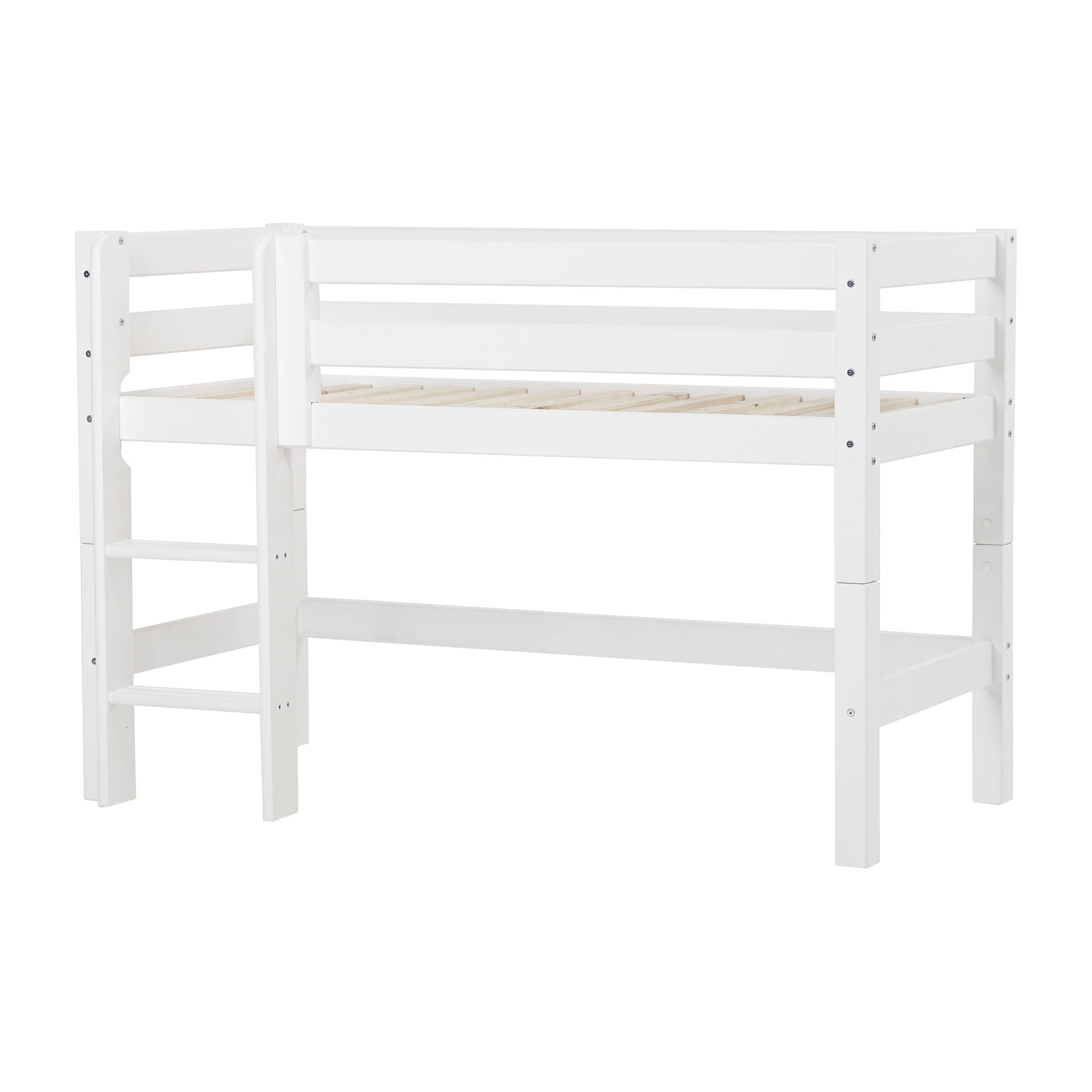 Hoppekids ECO Luxury puolikorkea sänky suorilla tikkailla koossa 70x160 cm. Käytännöllinen puolikorkeä sänky vapauttaa lattiatilaa ja portaat tekevät sänkyyn kiipeämisestä turvallista ja helppoa. Tämä sänky on Joutsenmerkki merkitty, katettu Hoppekidsin elinikäisellä takuulla ja tuotteen pinta on käsitelty vesipohjaisella, luontoystävällisellä lakalla joka ei sisällä haitallisia ainesosia tai turhia kemikaaleja. Voidaan pestä kuivaksi puristetulla liinalla ja miedolla saippuavedellä.
