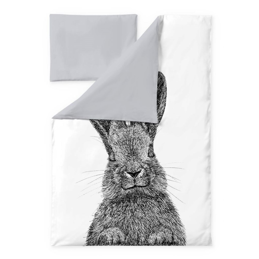 Finlayson Pupu lasten lakanasetti pakkaukseen kuuluu pussilakana 120x160 cm ja tyynyliina 40x60 cm. Valkopohjaisessa pussilakanassa on suloinen Pupu. Toinen puoli lakanasta on harmaa.