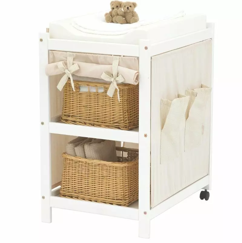 Hoitopöytään kuuluu kaksi isoa hyllyä, joiden säilytystila helpottaa vauvan hoitoa ja vaatteiden vaihtamista. Verhot IDA-MARIE hoitopöytään on kaunis lisäosa, joka tuo tuotteeseesi väriä ja lisää säilytystilaa.