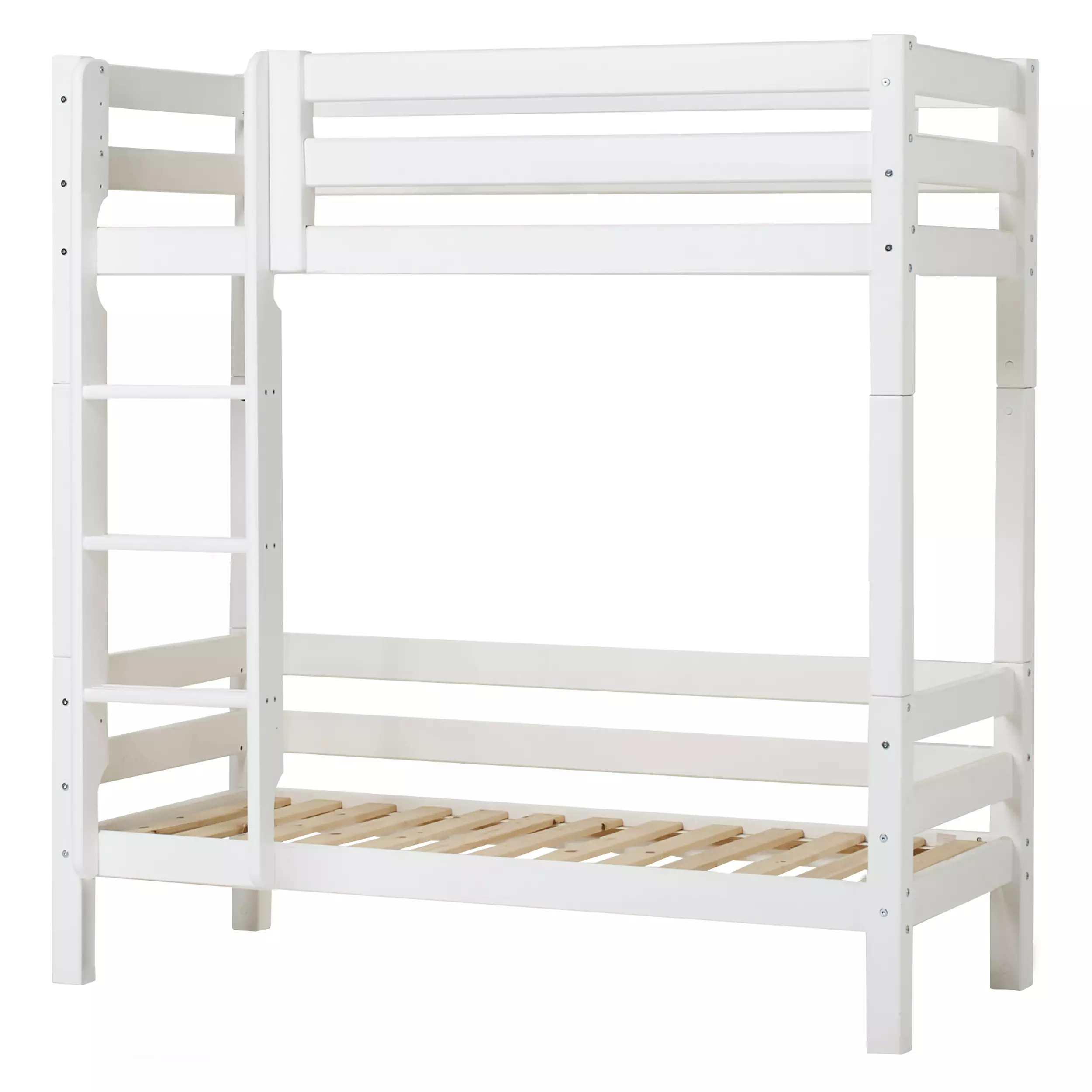 Hoppekids korkea kerrossänky 70x160cm alasängyn takalaidalla ja suorilla tikkailla - valkoinen
