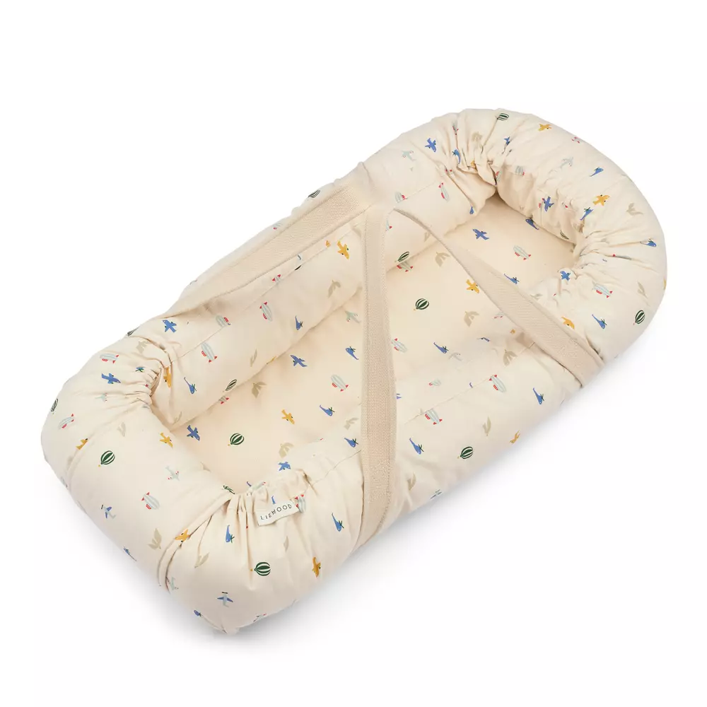 Liewood Gro unipesä kantokahvoilla tekee pienelle vauvalle pesämäisen, turvallisen olon esimerkiksi sänkyyn tai sohvalle. Unipesää ja vauvaa voi kantaa helposti huoneesta toiseen unipesän tukevien kantokahvojen avulla. Unipesän kangaspäällinen saadaan irrotettua ja pestyä, jotta se on aina puhdas ja hygieeninen. Pesässä on tukevat ja pehmeät reunat.