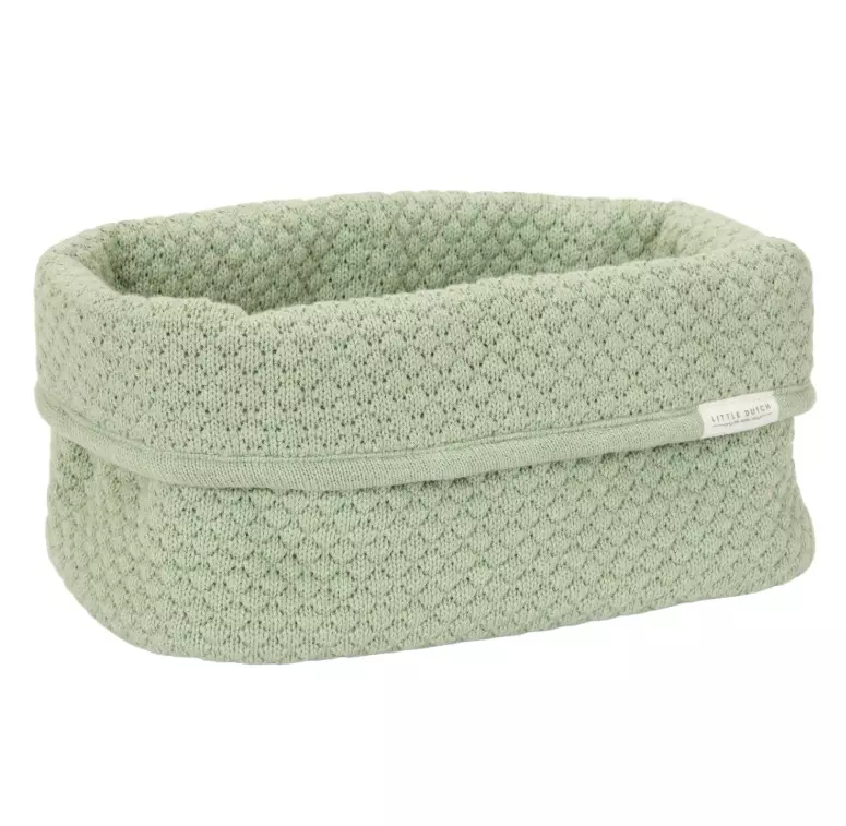 Little Dutch neulottu säilytyskori on kaunis kori esim. lapsen vaipoille ja muille hoitorarvikkeille tai leluille. Vahvistettu kori pysyy pystyssä tukevasti, ja sen korkeutta voidaan säätää käärimällä reunaa. Kori on kokonaan neulosta, ja hillitty väri sopii moneen sisustukseen.