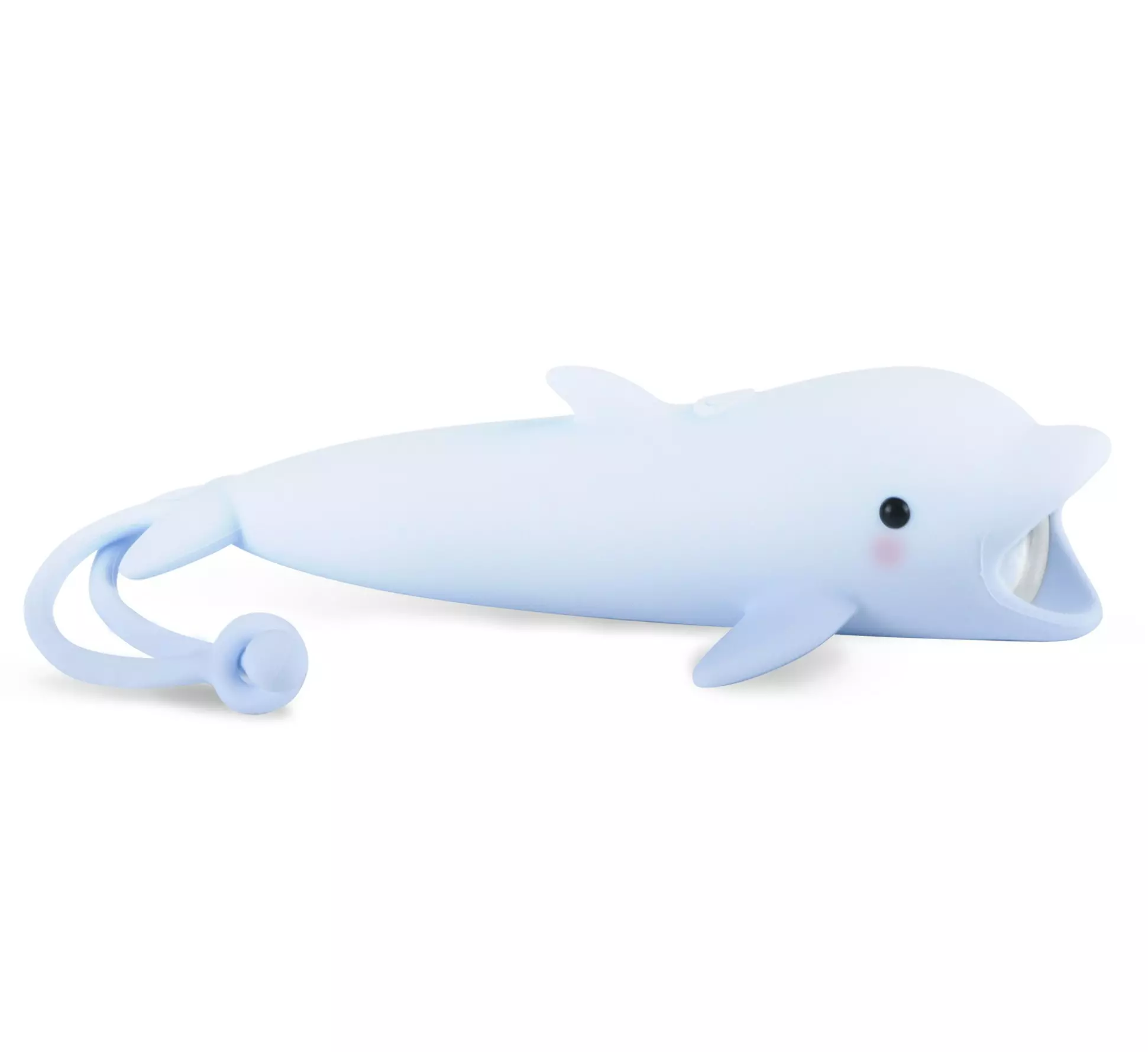 Rabbit & Friends yövalo taskulamppu on hauska delfiinin muotoinen taskulamppu. Taskulamppu on ladattava, ja se kestää yhdellä latauksella 12-90 tuntia. Taskulampun valo kirkkautta saa säädettyä, ja se on turvallinen lapsen silmille. Taskulamppu on ihanteellinen iltaseikkailuihin, varjoteatteriin tai iltasadun kertomiseen. Taskulampussa on kätevä ripustin, josta sen saa esim. reppuun roikkumaan. Taskulamppu on valmistettu pehmeästä silikonista.