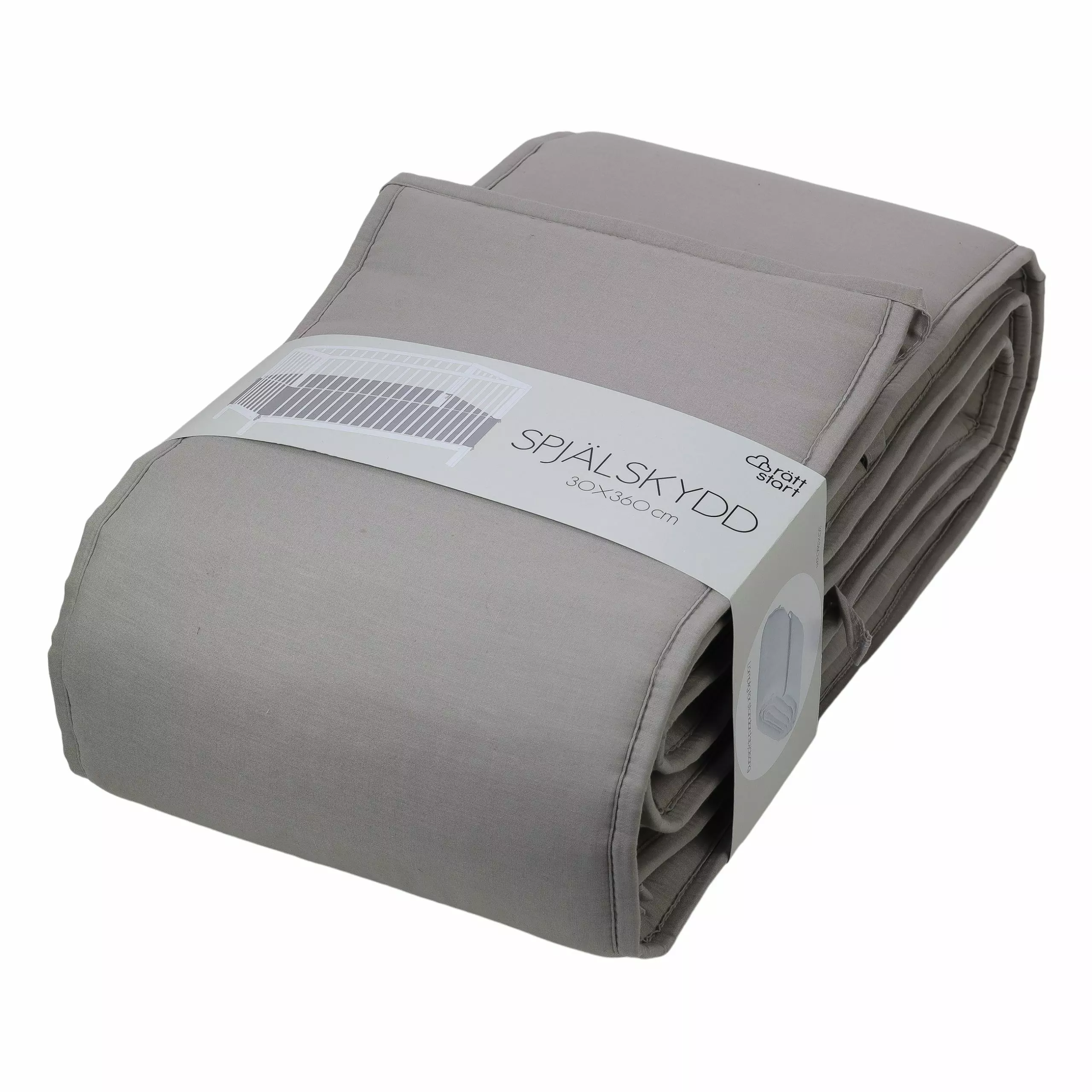 Rätt Start reunapehmuste 360cm sopii standardikokoiseen 120 x 60 cm pinnasänkyyn. Reunapehmuste on helppo kiinnittää pinnasänkyyn. Pehmusteen päällinen on valmistettu luomupuuvillasta, ja täyte on polyesteria.