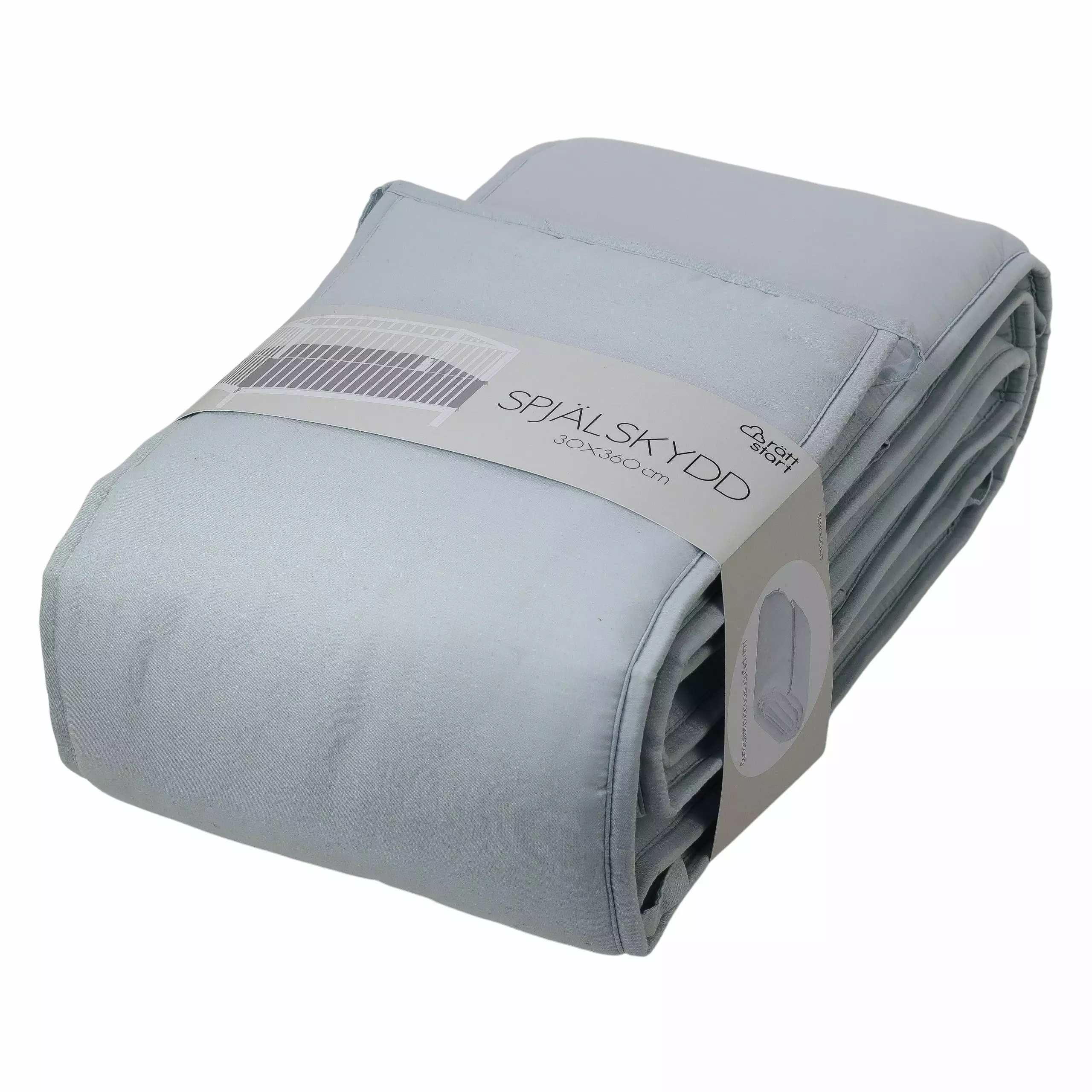 Rätt Start reunapehmuste 360cm sopii standardikokoiseen 120 x 60 cm pinnasänkyyn. Reunapehmuste on helppo kiinnittää pinnasänkyyn. Pehmusteen päällinen on valmistettu luomupuuvillasta, ja täyte on polyesteria.