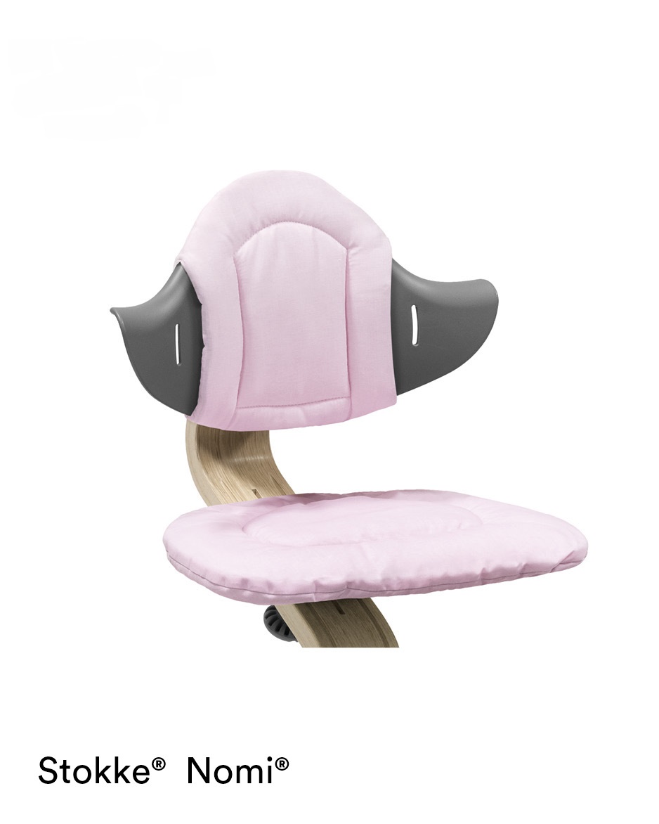 Stokke Nomi syöttötuolin pehmuste on kaksipuoleinen*, käännettävä pehmuste Nomi tuoliin, jolla saa nopeasti vaihdettua syöttötuolin ilmettä. Pehmuste tekee Nomi tuolista mukavan ja pehmeän lapselle ja se suojaa tuolin selkänojan ja istuimen pintaa. Pehmuste on helppo kiinnittää tuoliin ja se sopii Nomi tuoliin etukaaren kanssa ja ilman.