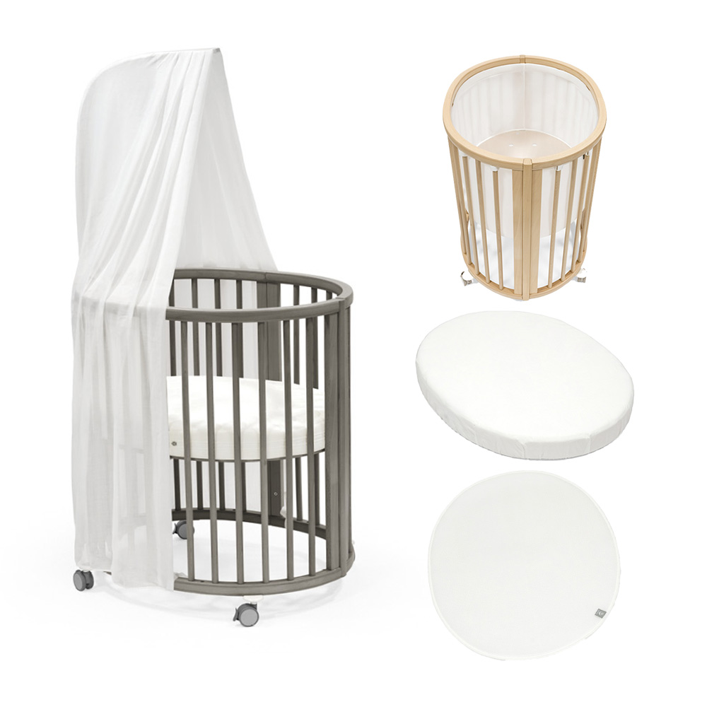 Stokke Sleepi Mini V3 starttipaketti sisältää Sleepi Mini ensivuoteen/kehdon ja kattavasti lisävarusteita. Sleepi Mini V3 on tarkoitettu lapsen ensivuoteeksi noin 6kk ikään asti. Sänky on kapea, pesämäinen ja turvallinen nukkua. Pinnasängyssä on lukittavat renkaat, jotka auttavat sängyn liikuttelussa. Renkaat myös auttavat tuudittamaan vauvan uneen. Sleepi Mini V3 voidaan suurentaa jatkopalojen avulla isommalle lapselle sopivaksi noin 5 -vuotiaaksi asti.