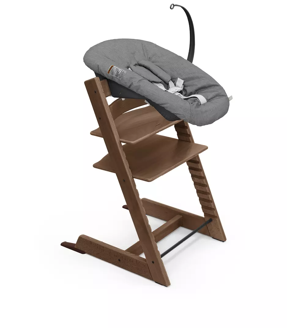 Stokke Tripp Trapp syöttötuoli ja Newborn Set vastasyntyneen istuin -paketti mahdollistaa Tripp Trapp syöttötuolin käytön jo heti vastasyntyneen kanssa. Tripp Trapp on kasvavien syöttötuolien uranuurtaja, joka on suunniteltu jo vuonna 1972. Syöttötuoli kasvaa aina aikuisikään asti. Tripp Trapp:n suunnittelija Peter Opsvik sai idean tuoliin, kun hän seurasi oman lapsensa hankaluutta löytää hyvää asentoa perheen ruokapöydässä sen jälkeen, kun hän oli kasvanut ulos perinteisestä syöttötuolistaan. Lapsen jaloilla ei ollut tukea ja hän joutui kurottelemaan, jotta ulottui pöydälle. Tripp Trapp on aina oikean kokoinen! Tämä tuotepaketti sisältää Tripp Trappin värissä Warm Brown (pyökki) ja Newborn Set istuimen värissä Anthracite (mustat muoviosat).