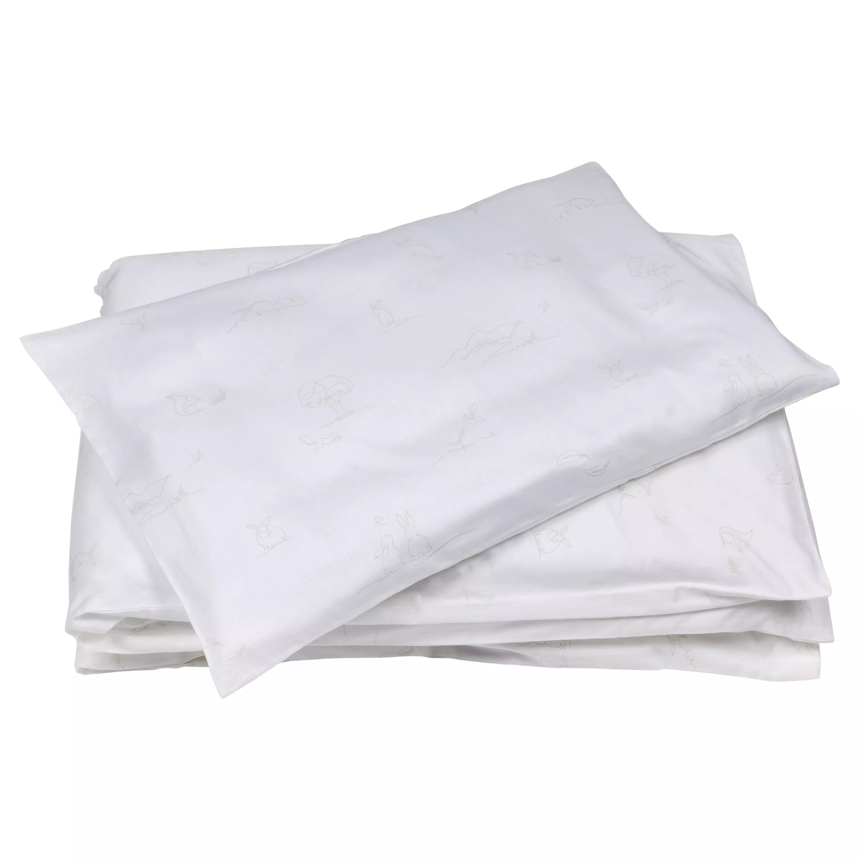 Tinynord pussilakanasetti 100 x 130 cm sisältää tyynyliinan ja pussilakanan valkoisena. Lakanasetti on 100% puuvillaa, joka on hengittävä pehmeä lapsen ihoa vasten. Lakanat on pakattu pieneen kangaskassiin, jota voi käyttää säilytyksen lisäksi moneen eri tarkoitukseen.