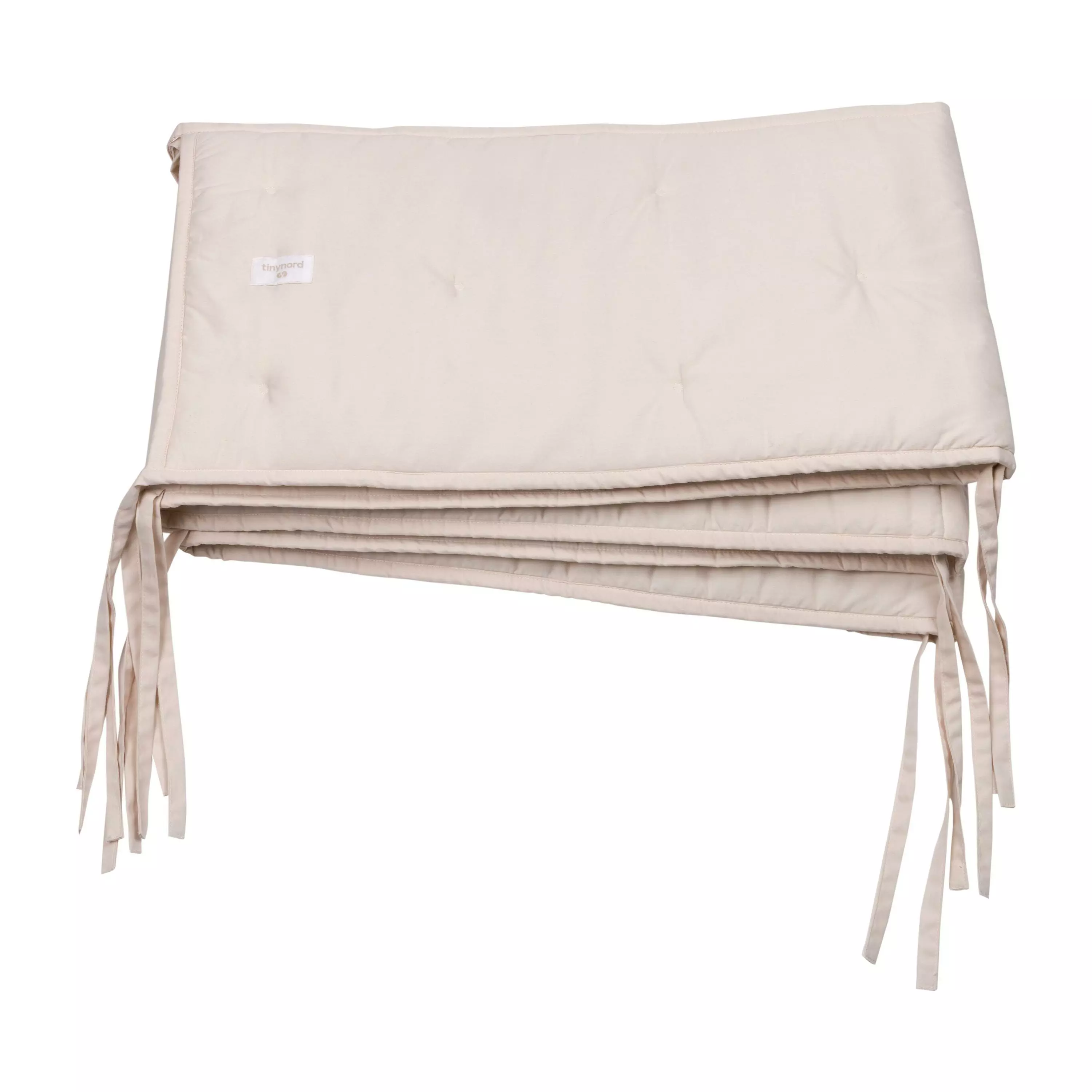 Tinynord reunapehmuste 30 x 360 cm sopii standardikokoiseen 120 x 60 cm pinnasänkyyn. Reunapehmusteessa on nauhat kiinnitystä varten. Reunapehmuste on konepestävä.