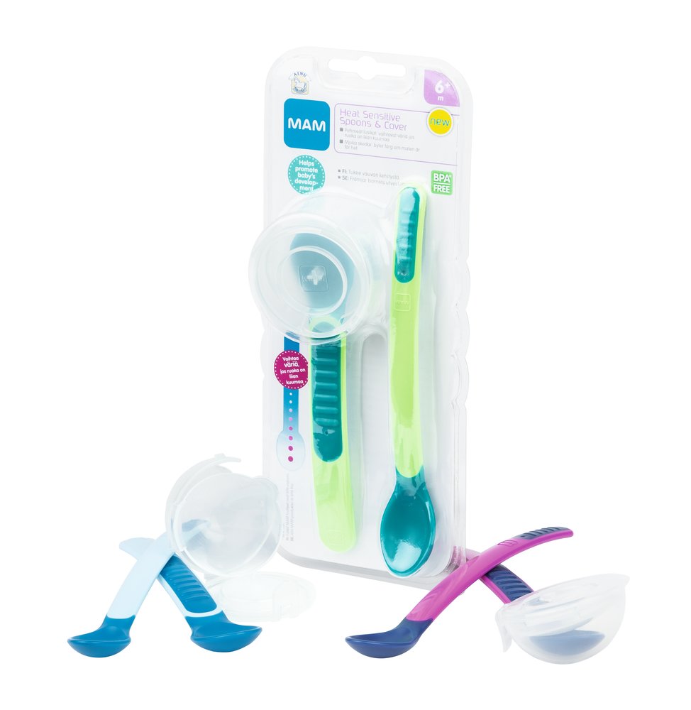 Mam lusikoissa on kaksi vaihetta itsenäiseen lusikan käyttöön. Ensimmäiseen vaiheeseen on pitkä lusikka, joka ylettyy helposti korkeampienkin purkkien pohjalle. Vauva ja vanhempi voivat pitää yhdessä kiinni lusikasta. Toisessa vaiheessa on leveämpi ja lyhyempi lusikka. Se on muotoiltu niin, että vauva saa siitä itse pienillä käsillään hyvän otteen.