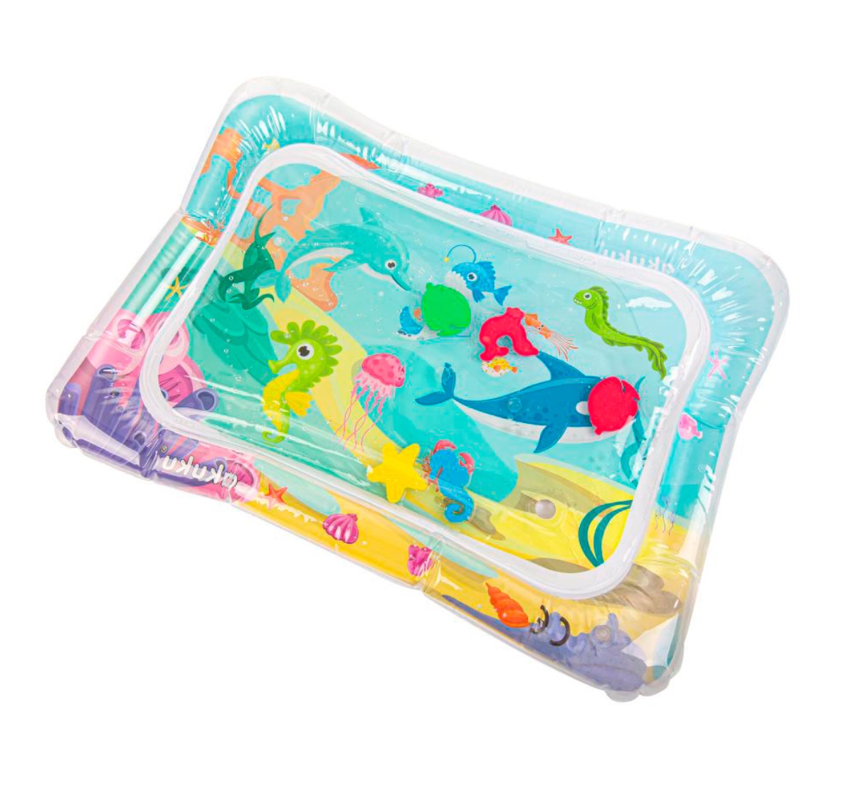 Akuku puhallettava vesileikkimatto Delfiini sopii 6kk+ ikäisille lapsille. Hauska vesileikkimatto kehittää lapsen hienomotoriikkaa, sekä eri lihasryhmiä. Värikkään maton sisällä kelluu viisi erilaista merenelävää, jotka herättävät lapsen mielenkiinnon. Vesileikkimatto on valmistettu kestävästä ja laadukkaasta muovista.