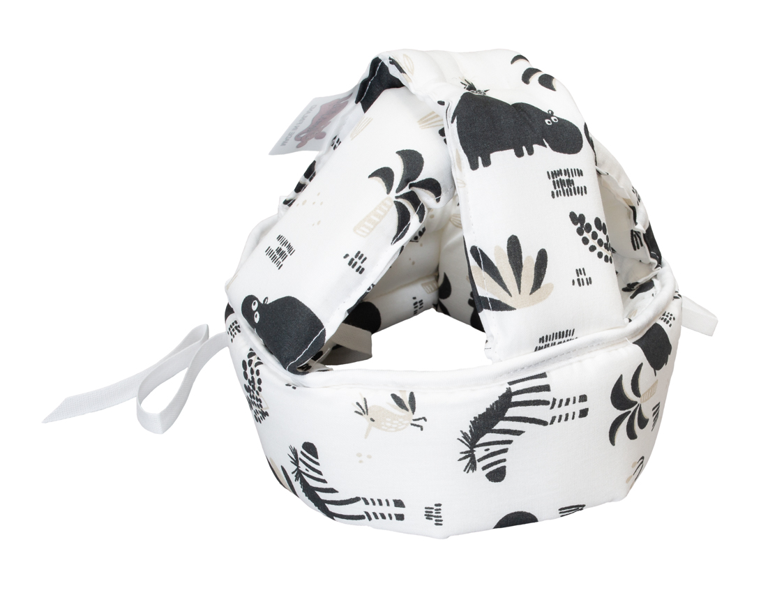 Anne & Mikael konttauspäähine suojaa lasta kolhuilta. Kangas on 100 % puuvillaa ja sisus vaahtomuovia. Leveyttä voi säätää tarroilla. Mukana tulee jatkopala, jolla saa muutaman sentin lisää leveyttä.