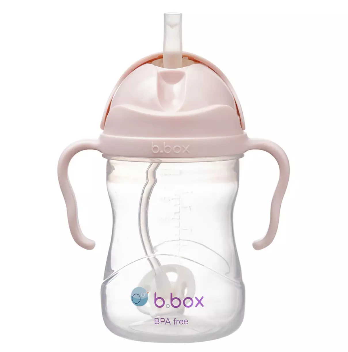 B.Box silikoninen pillimuki painolla sopii 6kk ikäisestä alkaen. Pillin alaosassa on paino, jonka ansiosta mukista voi juoda missä asennossa ja kulmassa tahansa. Mukia voi pitää kädessä kuin pulloa, mutta juoda siitä pillillä. Lisäksi mukissa on kahvat jotta siitä saa tukevan otteen. Pillissä on kaksisuuntainen venttiili, joka tekee juomisesta helppoa, sekä estää nesteen vuotamisen. Pehmeästä ja joustavasta pillistä on mukava juoda. Pillin saa myös taitettua kannen alle piiloon ja kansi lukittuu kunnolla mukiin paikoilleen, jolloin muki on ihanteellinen ottaa mukaan ja säilyttää laukussa, eikä se vuoda.