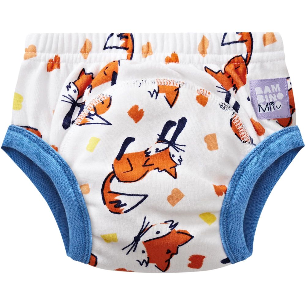 Bambino Mio Training Pants 2 - 3 -vuotta kuivaksi opetteluhousut on suunniteltu erityisesti lapsille, jotka harjoittelevat potalla käyntiä. Bambino Mio kuivaksi opetteluhousut tukevat itsenäistymistä ja niissä on piilotettuna sisällä vedenkestävä vuori ja superimukykyinen tyyny. Housuissa oleva vedenkestävä vuoraus mahdollistaa taaperon tuntea kosteuden, mutta samalla se minimoi vuodot. Vahingon sattuessa Training Pants pidättää pienet vuodot, mutta se ei ole vaippa.