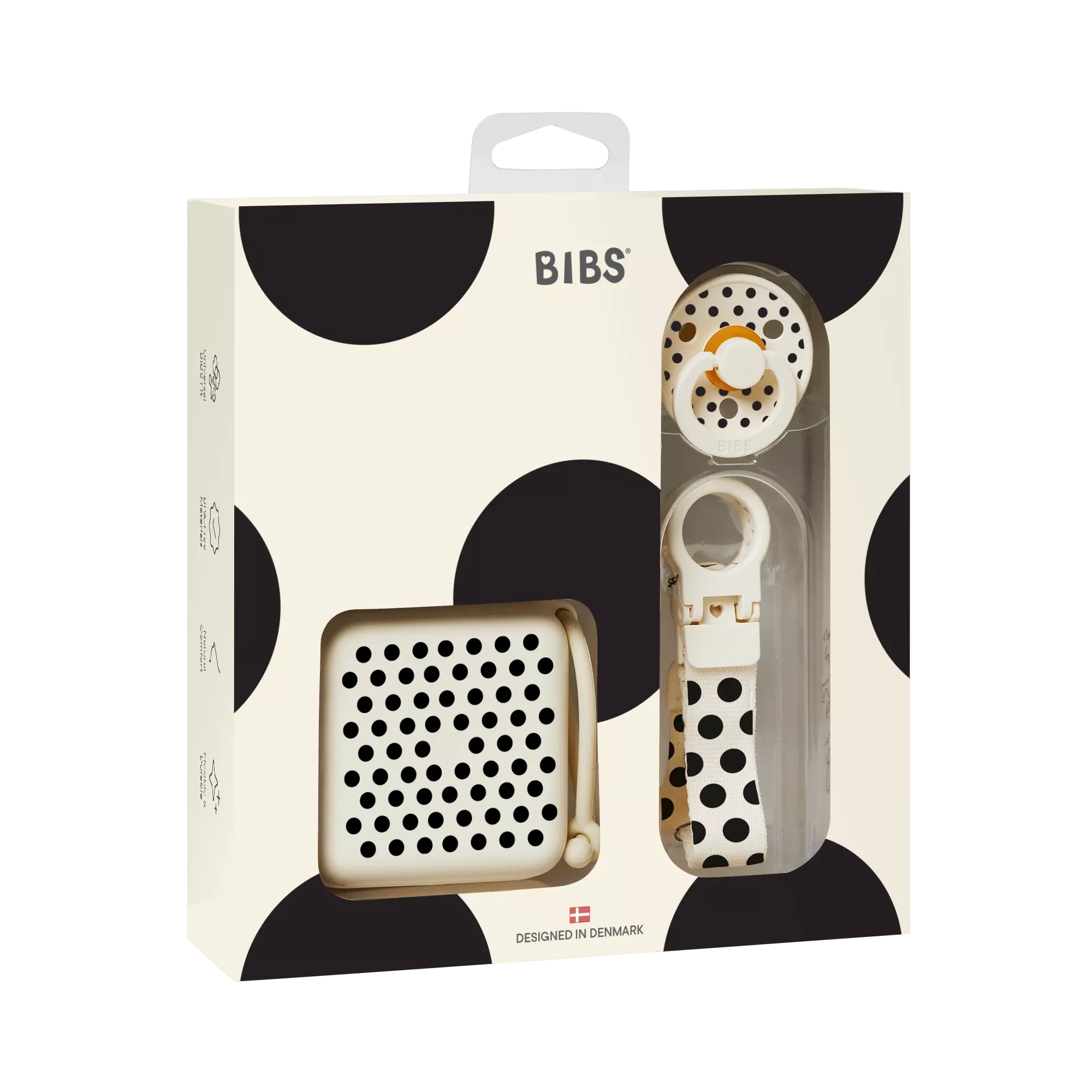 BIBS lahjapakkaus Studio Polka sisältää perinteisen BIBS tutin, tuttikotelon, sekä tuttinauhan tyylikkäässä Studio Polka kuosissa. Lahjapakkaus on ihana lahjaidea esim. Baby Shower kutsuille!