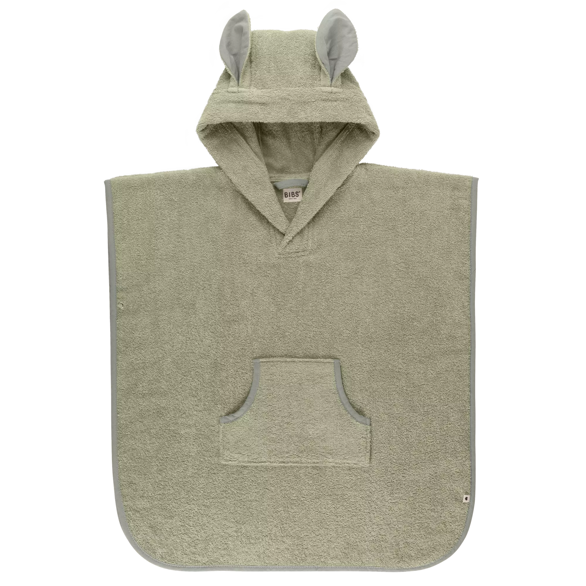 BIBS kylpypyyhe on poncho-mallinen pyyhe lapselle. Pyyhe on valmistettu pehmeästä ja laadukkasta terry-puuvillasta ja se tuntuu pehmeältä ihoa vasten. Pyyhkeen hupussa on suloiset korvat. Sopii käyttöön niin kotona kylvyn jälkeen kuin mukaan rannallekin!