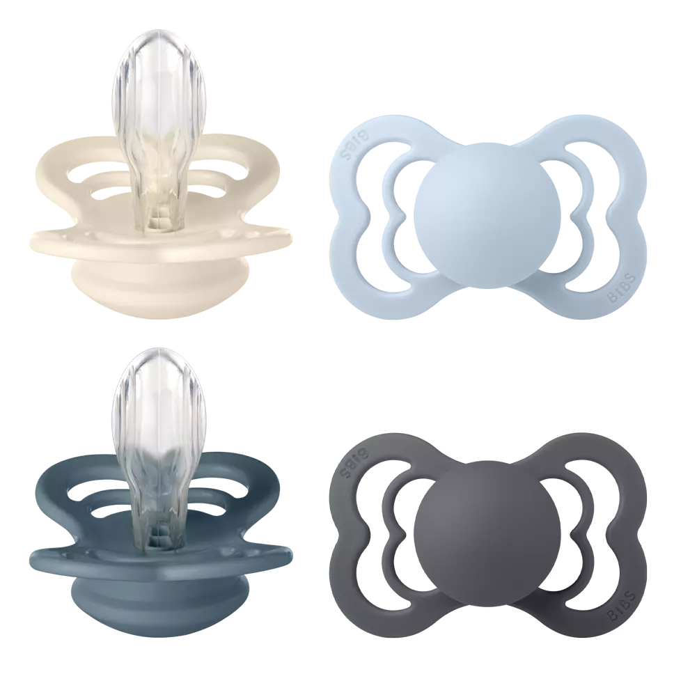 BIBS Supreme tutti silikonia 4kpl 6-18kk on leveä tutti, jossa on symmetrinen luonnonkuminen imuosa. Pisaranmuotoisessa imuosassa on on venttiili, joka mahdollistaa tutin litistymisen ja näin vähentää painetta kitalaessa ja ikenissä. Pakkaus sisältää 2 eri väristä tuttia silikonisella tuttipäällä.