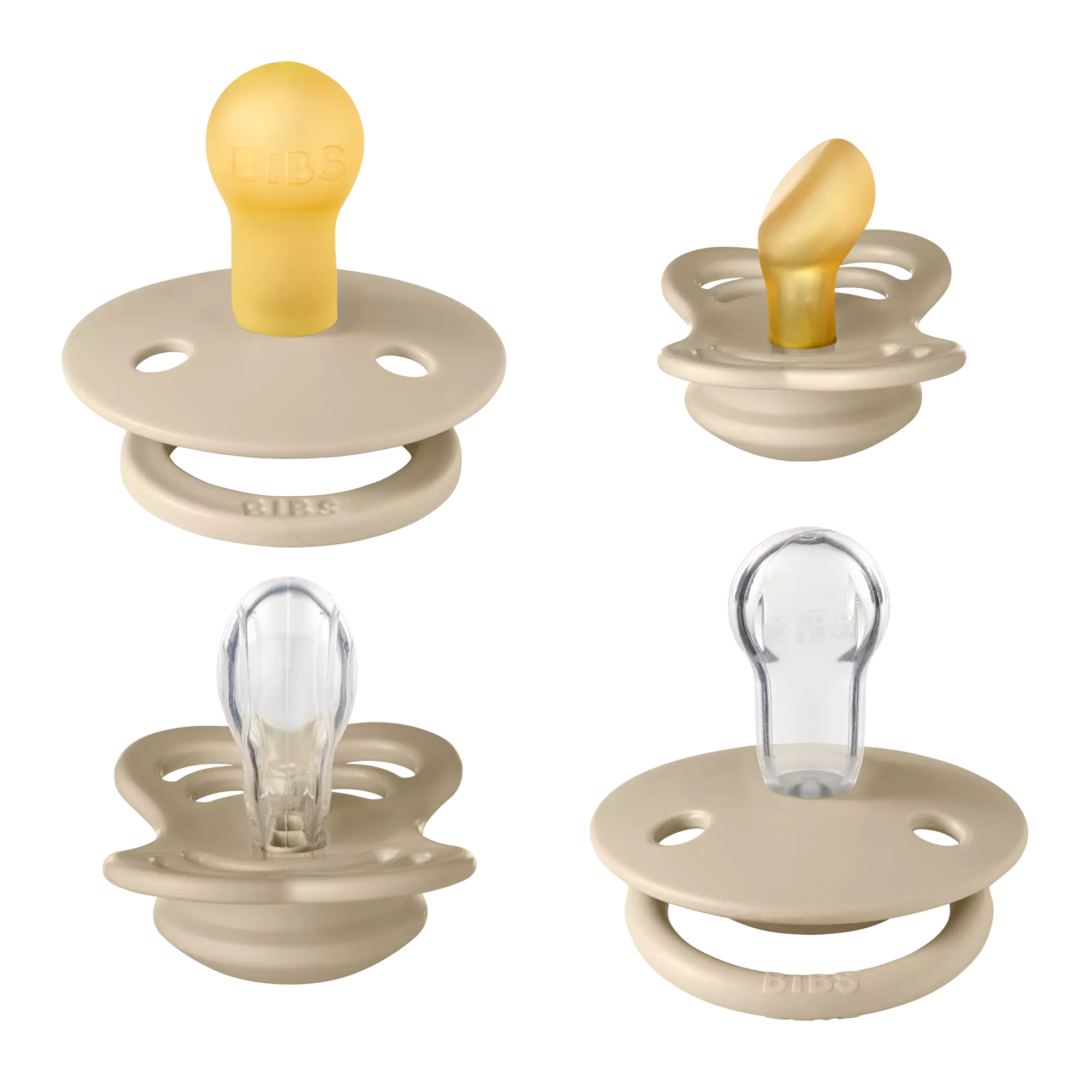 BIBS Try-It Collection 4kpl sisältää neljä erilaista BIBS tuttia koossa 1 (0-6kk). Pakkaus sisältää kaksi tuttia luonnonkumisella imuosalla ja kaksi tuttia silikonisella imuosalla. Suojakilpi on valmistettu polypropyleenistä (PP), joka on materiaalina kevyt ja kestävä.