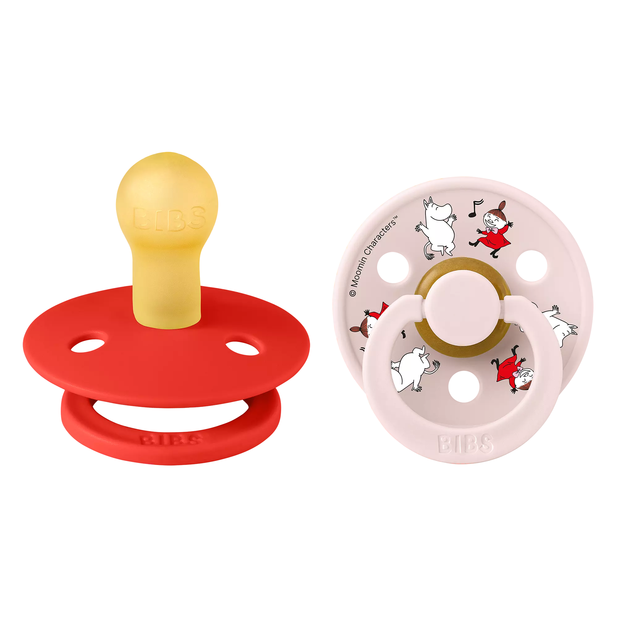 BIBS x Moomin tutti 6-18kk 2kpl on perinteinen tutti, jossa on luonnonkuminen imuosa ja pyöreä suojakilpi. BIBS x Moomin on ekslusiivinen kokoelma, jossa BIBSin tutut tuotteet on yhdistetty rakastettuihin Muumihahmoihin.