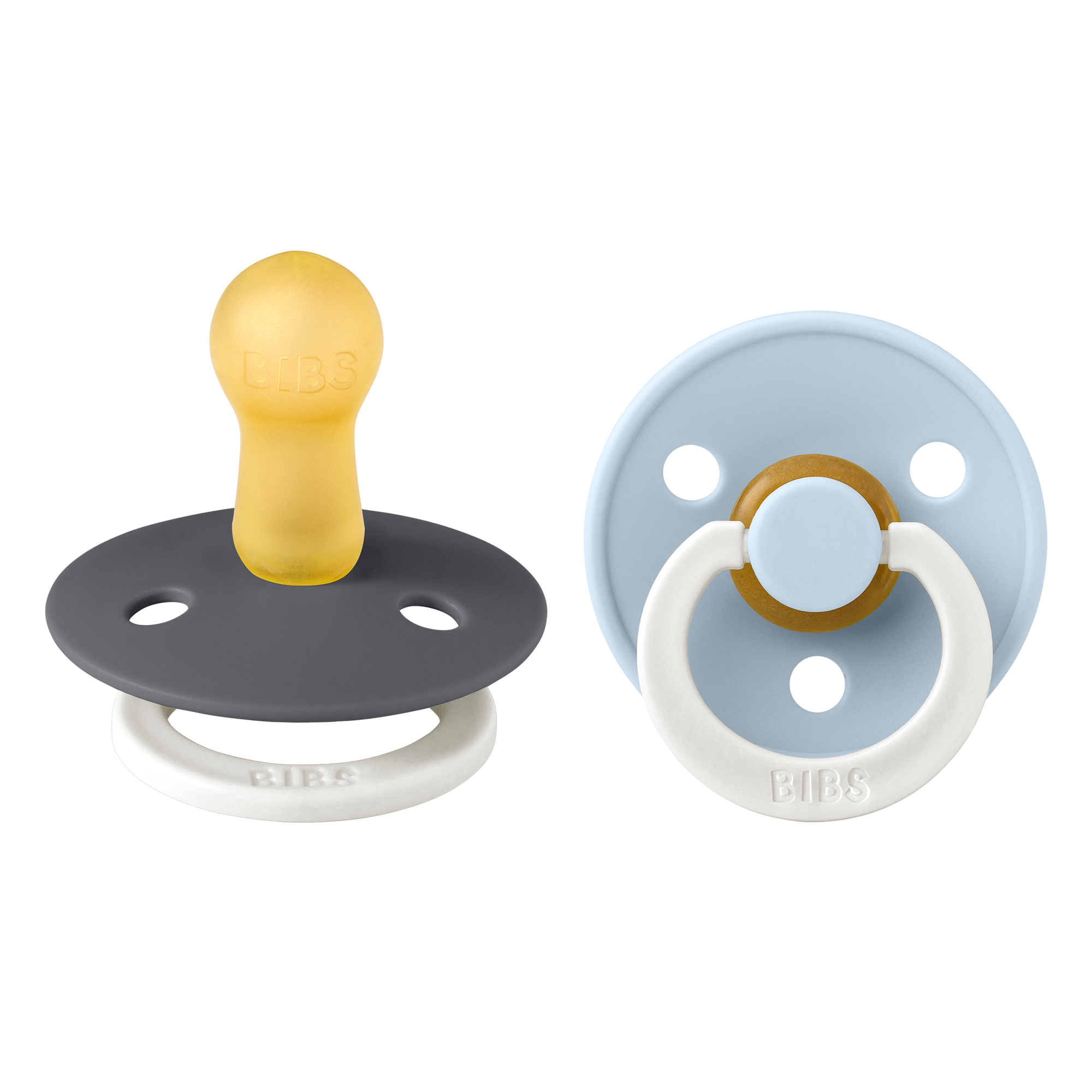 BIBS yötutti 6-18kk 2kpl "Iron/Baby Blue Night"" on perinteinen tutti, jossa on luonnonkuminen imuosa ja pyöreä suojakilpi. Yötutin valkoinen rengas hohtaa pimeässä, jolloin se on helpompi löytää. BIBS tutteja on valmistettu jo yli 50 vuoden ajan Tanskassa. Imuosa on kirsikanmuotoinen ja se on kehitetty rauhoittamaan ja lohduttamaan lasta. Imuosa mukailee rinnan muotoa ja näin tukee imemisrefleksiä. Pakkaus sisältää 2 kpl BIBS tuttia.