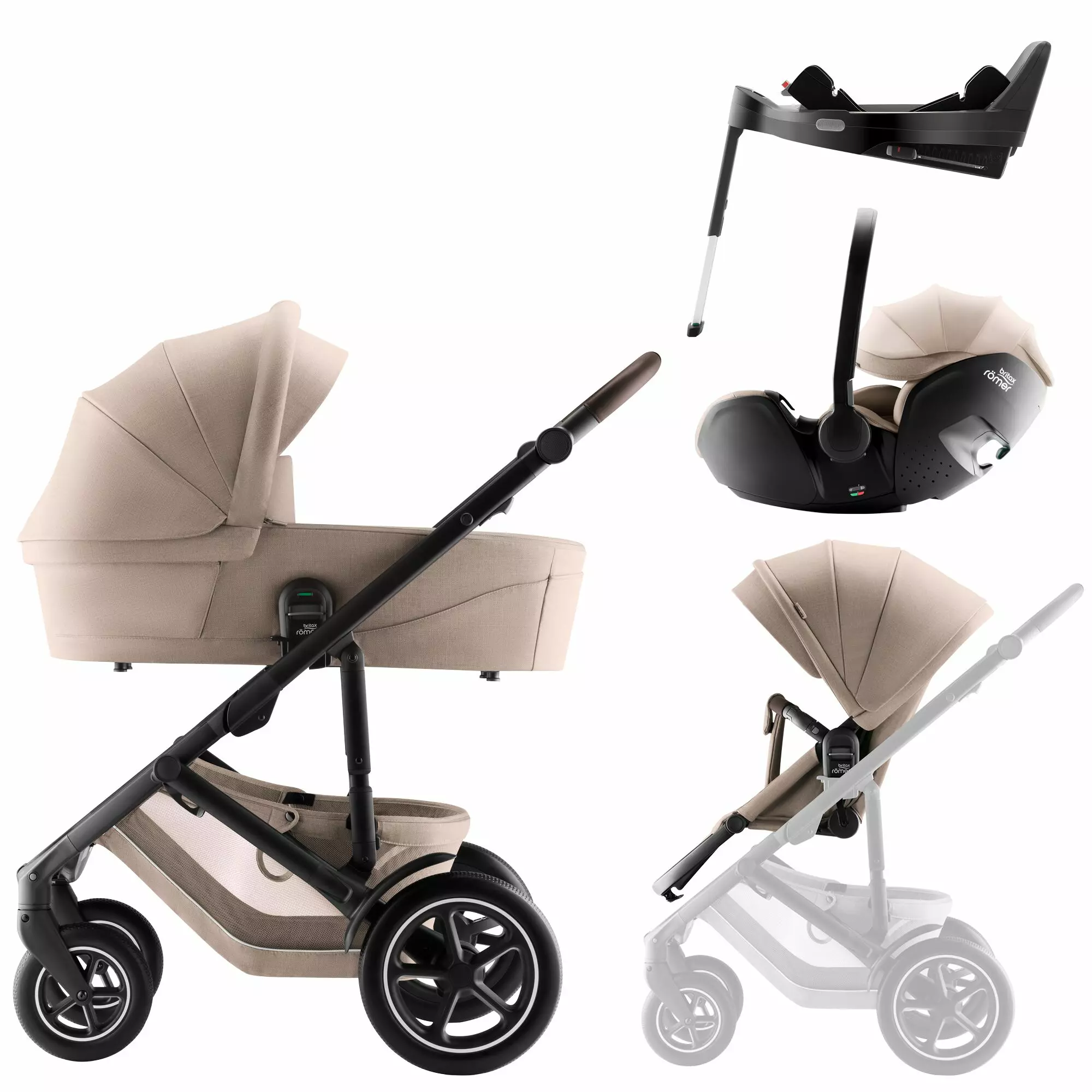 Britax Smile 5Z starttipaketti sisältää tarvittavat tuotteet lapsen kanssa liikkumiseen. Paketti sisältää Smile 5Z yhdistelmävaunut, Britax Baby-Safe Pro turvakaukalon, Britax Vario base 5Z isofix-telakan autoon ja adapterin, jolla turvakaukalo voidaan kiinnittää rattaan runkoon. Smile 5Z yhdistelmävaunut ovat monipuoliset vaunut, jotka soveltuvat käyttöön kaikkiin maastoihin. Yhdistelmävaunut sopivat käyttöön vastasyntyneestä alkaen 4-vuotiaaksi asti.
