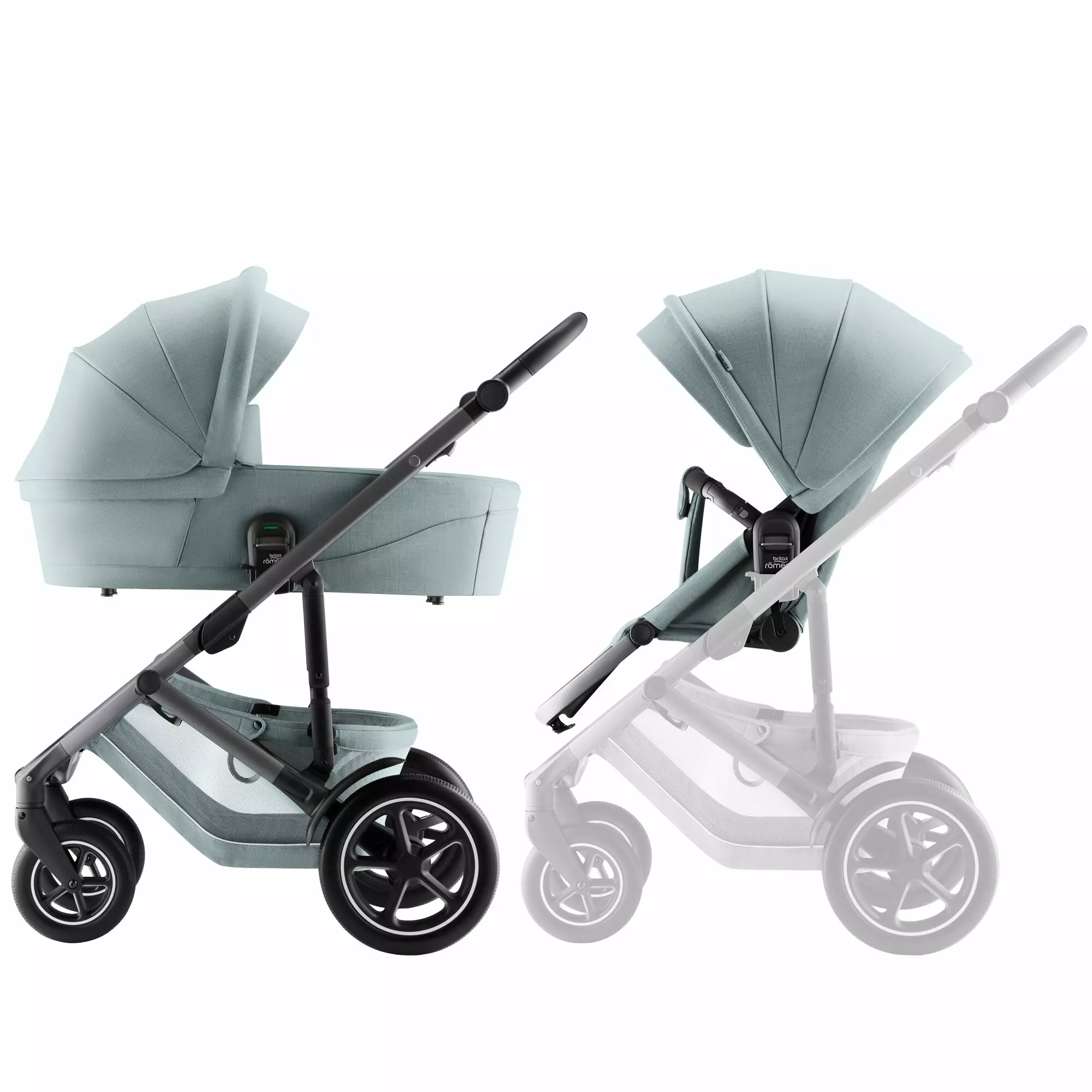 Britax Smile 5Z yhdistelmävaunut ovat monipuoliset vaunut, jotka soveltuvat käyttöön kaikkiin maastoihin. Yhdistelmävaunut sopivat käyttöön vastasyntyneestä alkaen 4-vuotiaaksi asti. Smile 5Z yhdistelmävaunut sisältävät rungon renkaineen, adapterin turvakaukalolle, vaunukopan ja ratasistuimen. Paketin mukana tulevan adapterin avulla voit kiinnittää runkoon vaivattomasti myös Britax turvakaukalon.