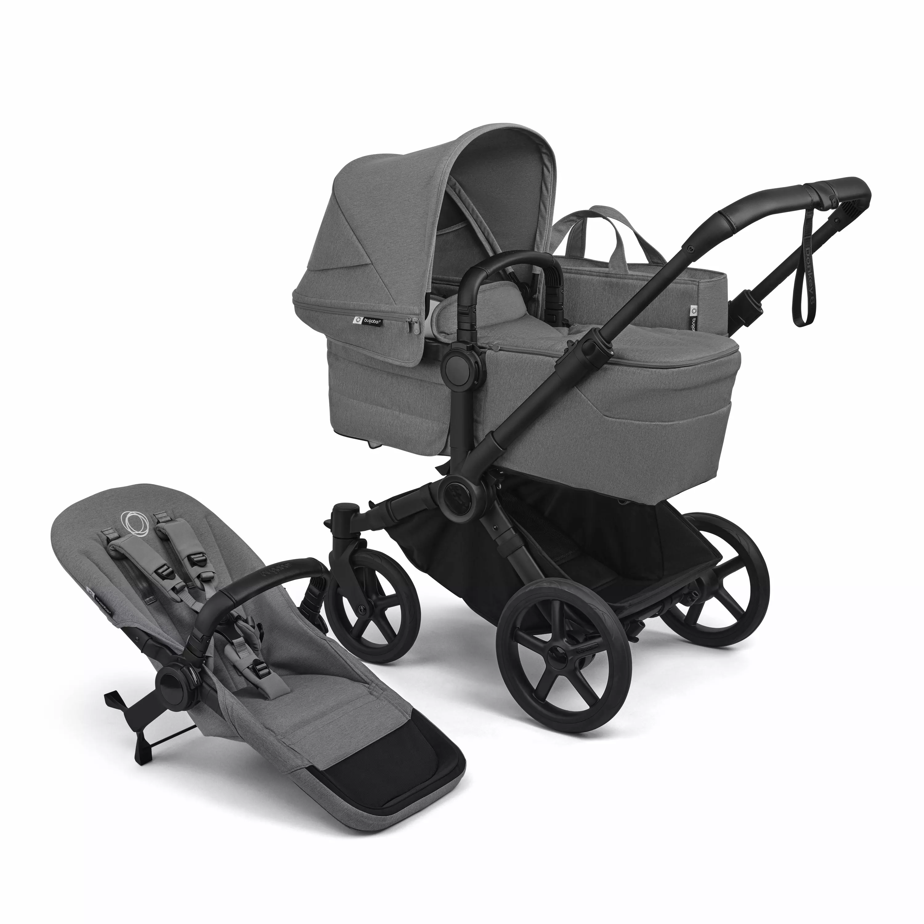 Donkey6 yhdistelmävaunu on 60cm leveä (sama leveys kuin Bugaboo Fox rattaalla) ja laajennettuna sisaruksille / kaksosille, se on 74cm leveä. Bugaboo lastenvaunuihin on saatavilla useita erilaisia lisävarusteita kuten mukiteline, lämpöpusseja, seisomalauta, vaihdettavia kuomuja ja istuinpehmusteita. Lisävarusteiden avulla saat muutettua rattaiden ilmettä helposti tarpeisiisi sopivaksi. Donkey6 ratasta voidaan käyttää "Travel Systemina" turvakaukalon kanssa, tarvittavat adapterit myydään erikseen. Adaptereihin on mahdollista kiinnittää useita erilaisia turvakaukaloita ja adaptereita on myynnissä kaksi erilaista, toinen yhdelle lapselle tarkoitettu ja toinen kaksosille.