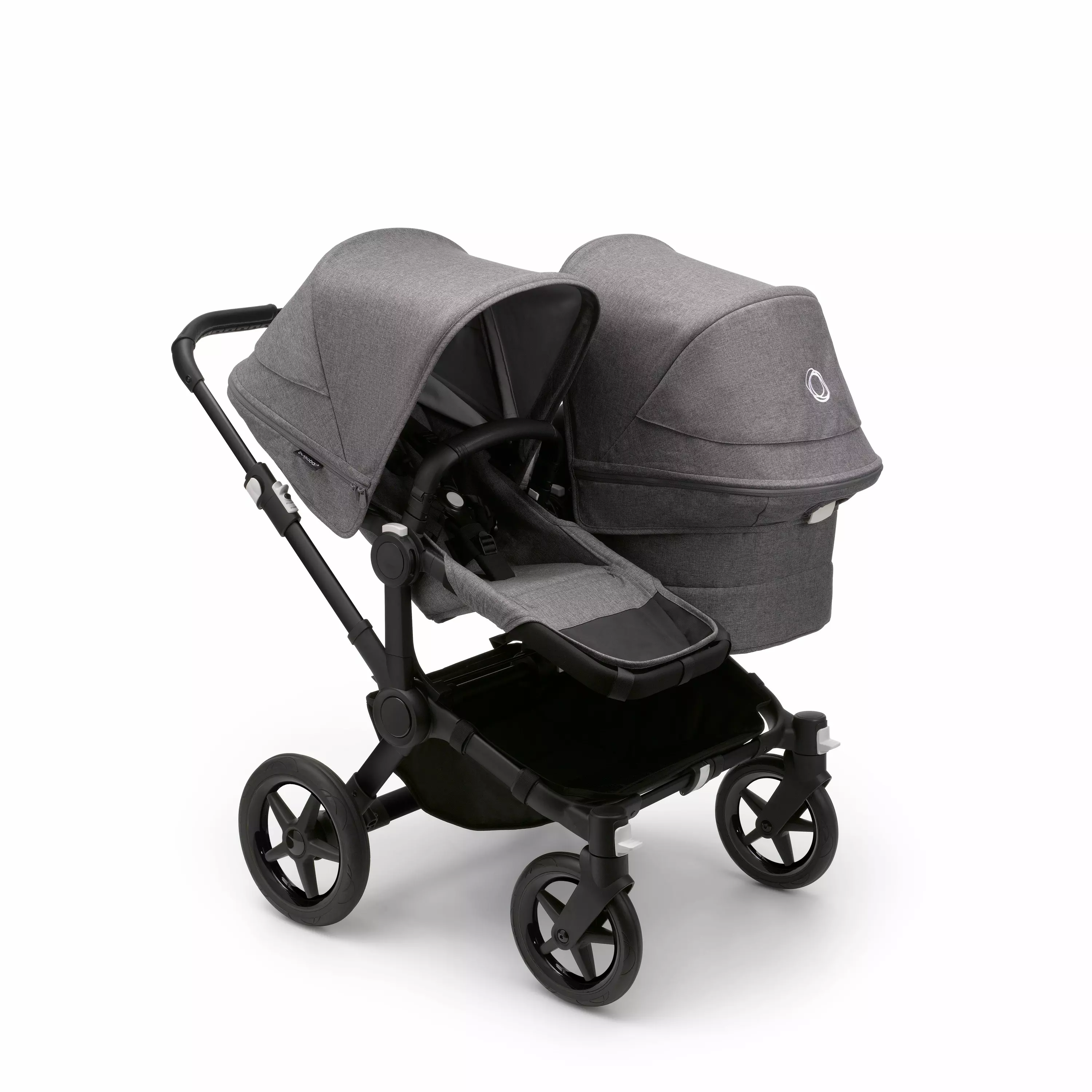 Bugaboo Donkey5 Duo sisarusrattaat ovat monipuoliset tuplarattaat 0-4 vuotiaille lapsille. Tuplarattaana kahdella istuinosalla Donkey5 Duo sopii joko kahdelle saman ikäiselle istuvalle lapselle tai istuinosalla ja vaunukopalla kahdelle eri ikäiselle lapselle. Vaunupaketti sisältää rungon renkaineen, vaunukopan/istuinosien rungot x2, vaunukopan ja istuimien kankaat, kuomut, turvakaaret, tavarakorin istuinten alle sekä irrotettavan sivukorin istuimen viereen kiinnitettäväksi ja sadesuojat. Tarvittaessa sisarusrattaat muuntautuvat nopeasti ja kätevästi rattaaksi/vaunuksi yhdelle lapselle.
