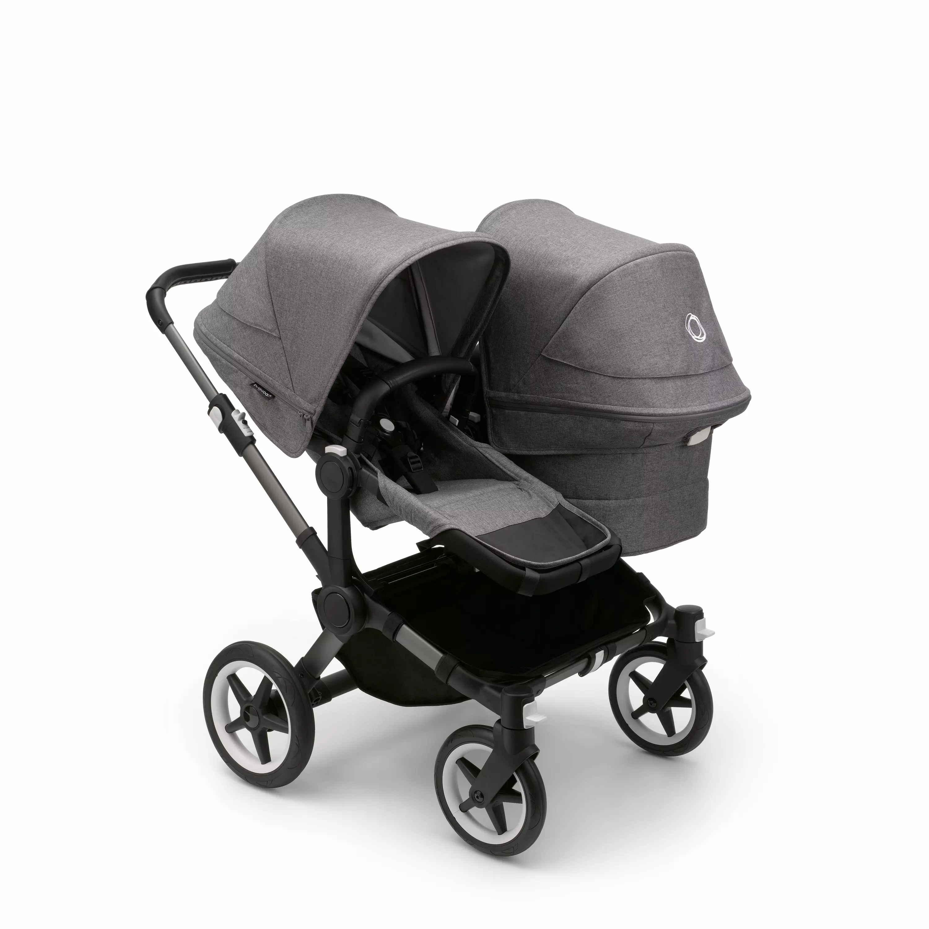 Bugaboo Donkey5 Duo sisarusrattaat ovat monipuoliset tuplarattaat 0-4 vuotiaille lapsille. Tuplarattaana kahdella istuinosalla Donkey5 Duo sopii joko kahdelle saman ikäiselle istuvalle lapselle tai istuinosalla ja vaunukopalla kahdelle eri ikäiselle lapselle. Vaunupaketti sisältää rungon renkaineen, vaunukopan/istuinosien rungot x2, vaunukopan ja istuimien kankaat, kuomut, turvakaaret, tavarakorin istuinten alle sekä irrotettavan sivukorin istuimen viereen kiinnitettäväksi ja sadesuojat. Tarvittaessa sisarusrattaat muuntautuvat nopeasti ja kätevästi rattaaksi/vaunuksi yhdelle lapselle.