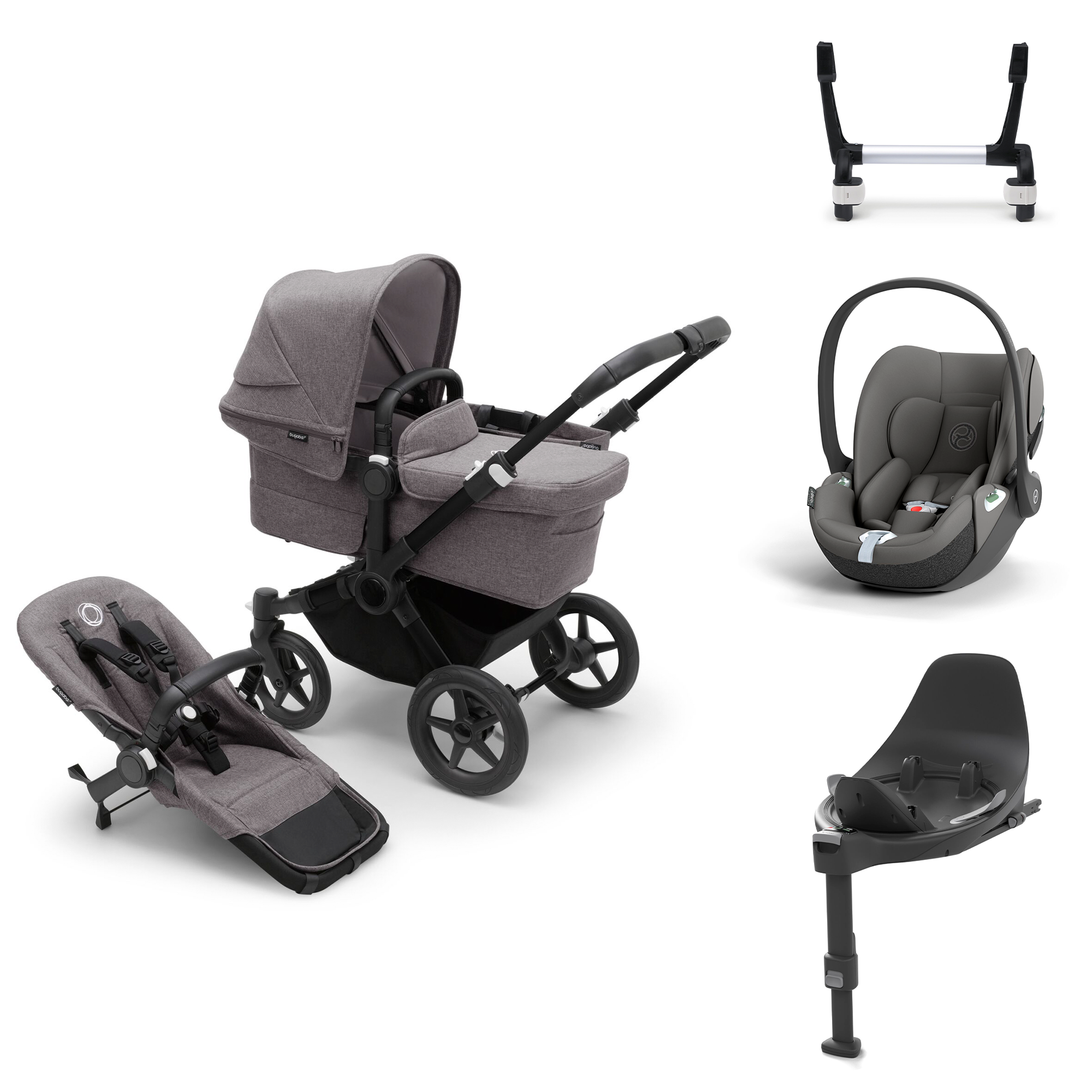 Bugaboo Donkey5 Mono starttipaketti on kattava vaunupaketti vauvan kanssa liikkumiseen. Starttipaketti sisältää Donkey5 Mono yhdistelmävaunut (väri Grey Melange/Black runko), Cybex Cloud T turvakaukalon, Base T isofix-telakan ja adapterin, jolla turvakaukalo voidaan kiinnittää rattaan runkoon.