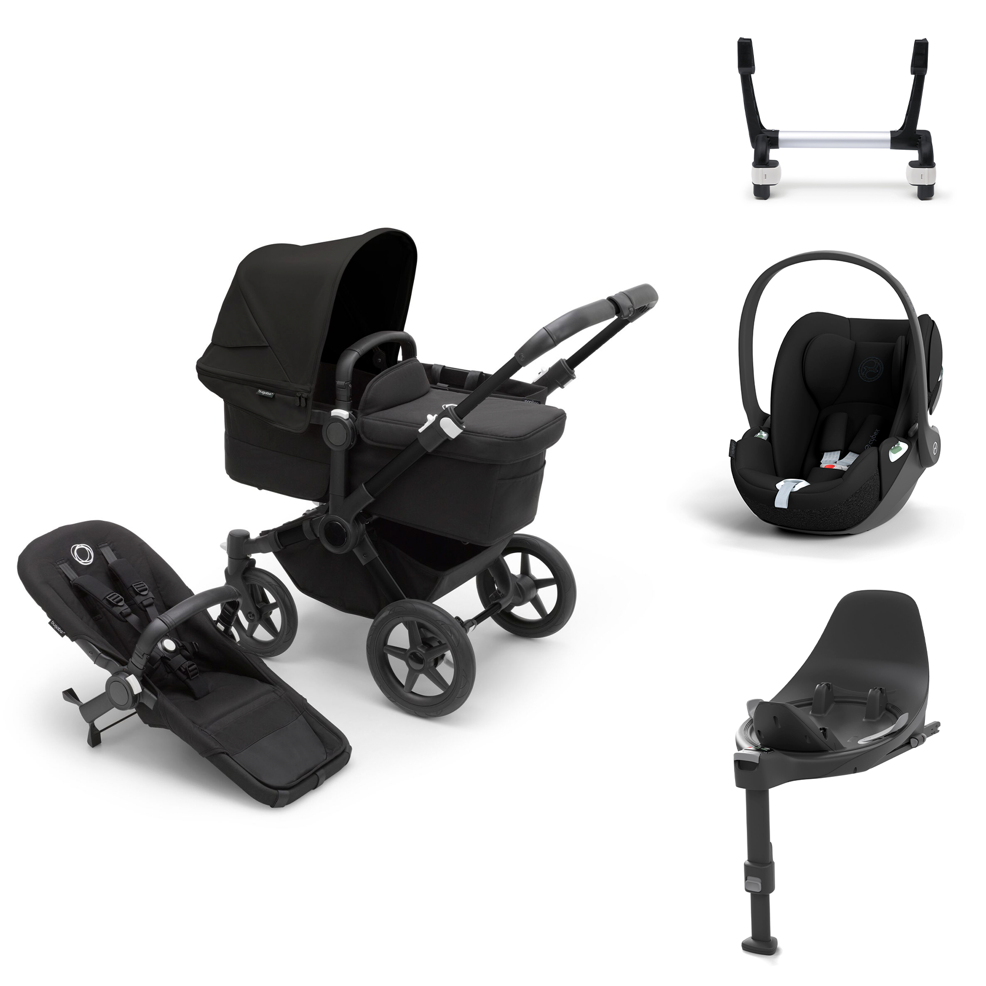 Bugaboo Donkey5 Mono starttipaketti on kattava vaunupaketti vauvan kanssa liikkumiseen. Starttipaketti sisältää Donkey5 Mono yhdistelmävaunut (väri Midnight Black/Black runko), Cybex Cloud T turvakaukalon, Base T isofix-telakan ja adapterin, jolla turvakaukalo voidaan kiinnittää rattaan runkoon.