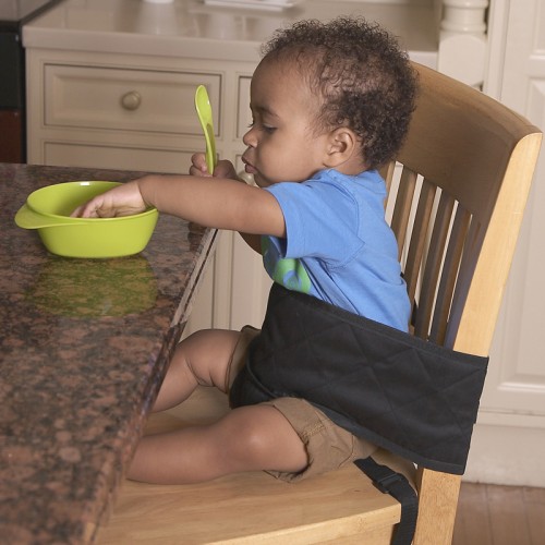 Clippasafe matkasyöttötuoli musta mahdollistaa lapsen istumisen aikuisen tuolissa. Clippasafe matkasyöttötuoli menee pieneen tilaan ja se on helppo ottaa matkalla mukaan. Matkasyöttötuolin kiinnitys on helppoa ja se kiinnitetään tuolin alle sekä selkönojaan. Lapsi on kiinni haaroista ja kyljistä matkasyöttötuolissa.