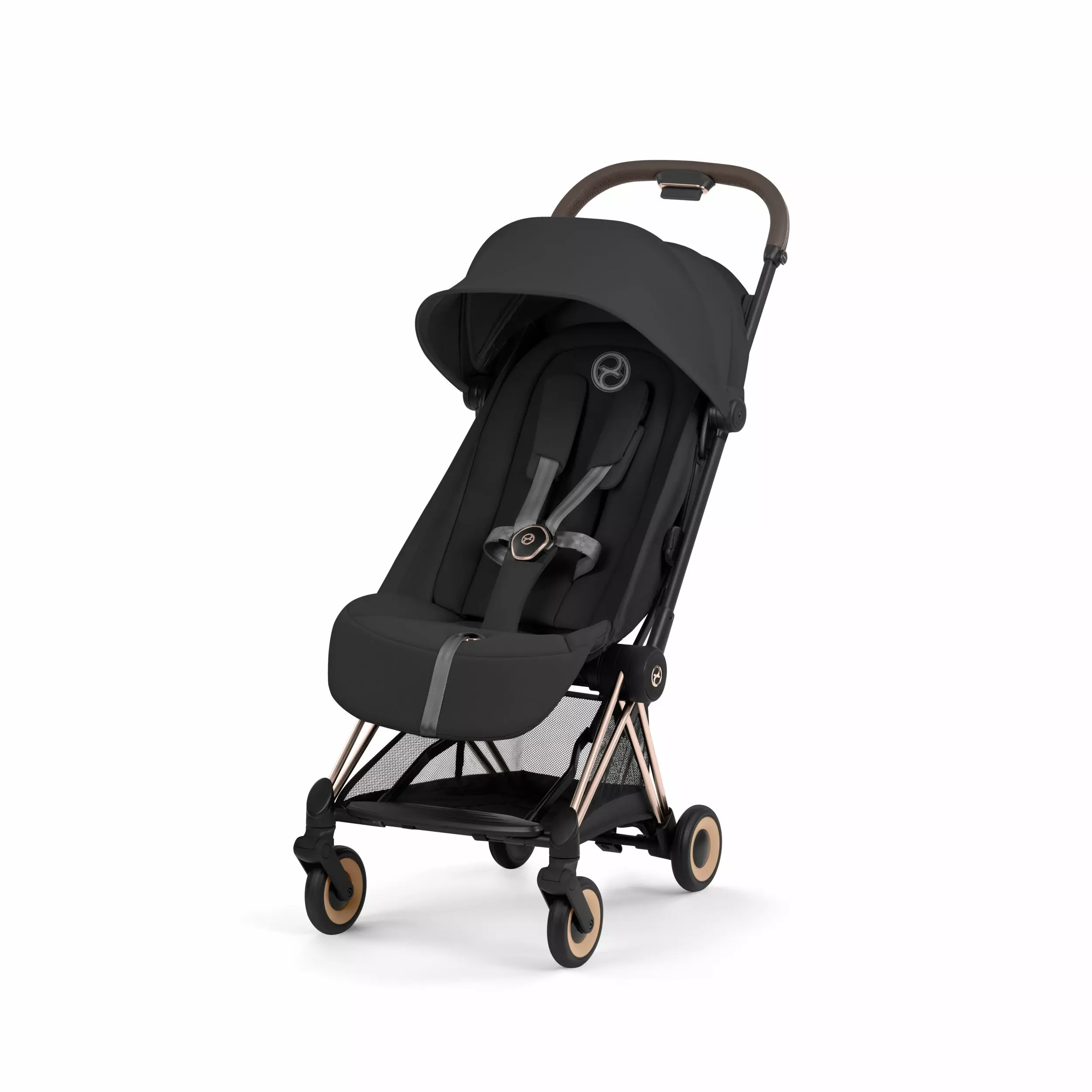 Cybex Coya Comfort matkarattaat Rosegold-rungolla ovat ultrakompaktit ja kevyet, pieneen kokoon taittuvat matkarattaat jotka voit ottaa mukaan lentokoneeseen käsimatkatavarana*. Coya sopii käyttöön syntymästä noin 4-vuotiaaksi asti. Coya matkaratas on varustettu ergonomisella makuuasentoon säätyvällä istuimella, säädettävällä jalkatuella, suojaavalla kuomulla ja pehmeällä etupyöräjousituksella. Coya on ihanteellinen ratas matkoille mukaan lentokoneeseen, autoon tai junaan. Uudistuneeseen Coya Comfort rattaaseen saadaan kiinnitettyä innovatiivinen vaunukoppa, joka saadaan myös taitettua kasaan.