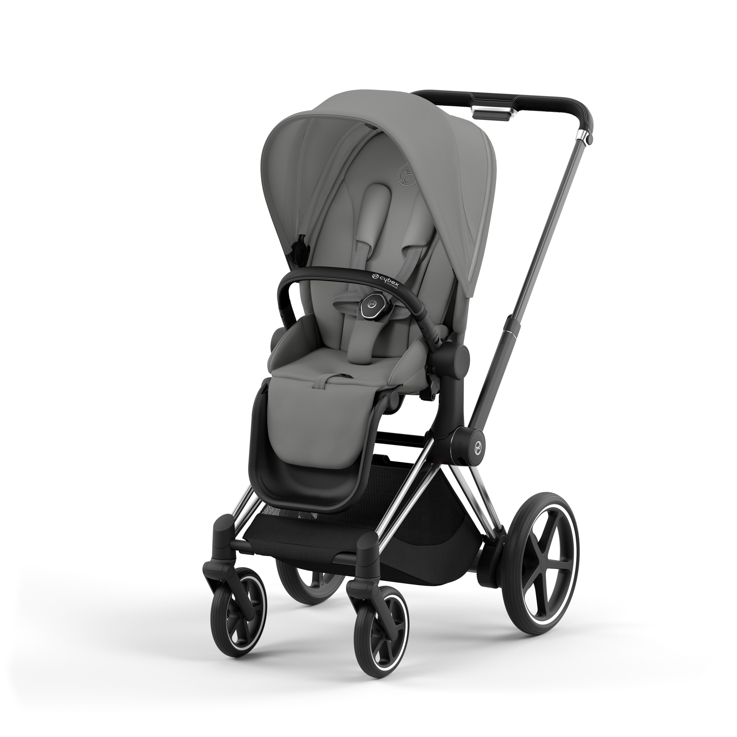 ePriam on pohja Cybex Platinum 4-in-1 Travel Systemille. ePriam rattaassa lapsi voi kulkea kasvot kohti työntäjää tai kohti kulkusuuntaa. Istuinosan saa säädettyä täyteen makuuasentoon helposti yhdellä kädellä, jolloin nukkuminen rattaassa onnistuu paremmin. Jalkatuki on säädettävissä useaan asentoon. Lapsi kiinnitetään rattaaseen viisipistevaljailla, jotka saa kiristettyä yhdellä kädellä. Istuinosassa on myös nivelletty turvakaari. Jatkettava XXL-kuomu antaa tehokkaasti suojaa auringolta ja tuulelta ja lisäksi kuomussa on magneeteilla toimiva kurkistusluukku.