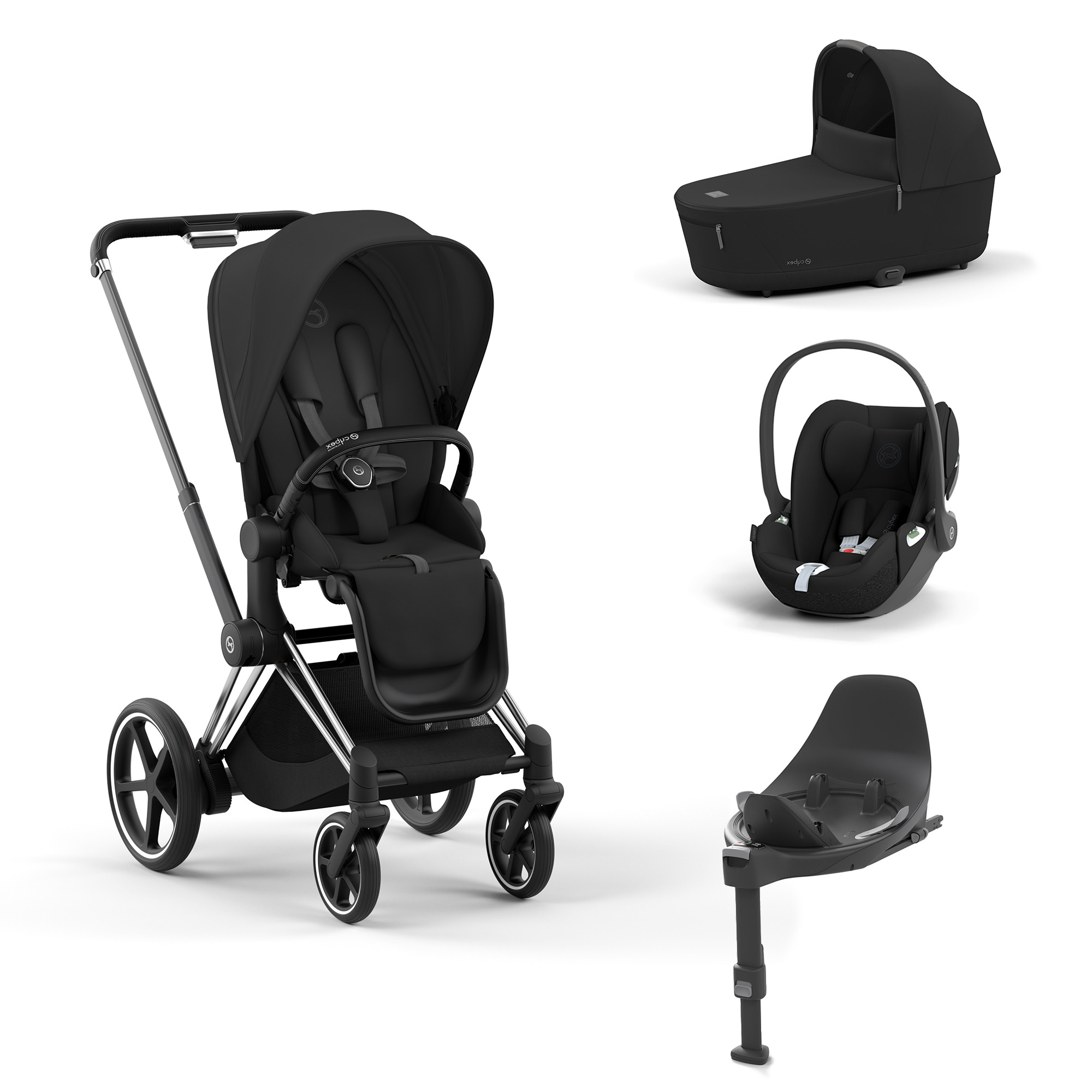Cybex ePriam starttipaketti sisältää ePriam sähköavusteiset yhdistelmävaunut Chrome Black-rungolla, Cloud T turvakaukalon sekä Base T telakan. Monipuolinen ePriam sopii käyttöön lapsella vastasyntyneestä noin 4 vuoteen asti. Lisäksi paketti sisältää sadesuojat vaunukopalle ja rattaalle sekä turvakaukaloadapterit, joiden avulla voit kiinnittää kaukalon rattaan runkoon.