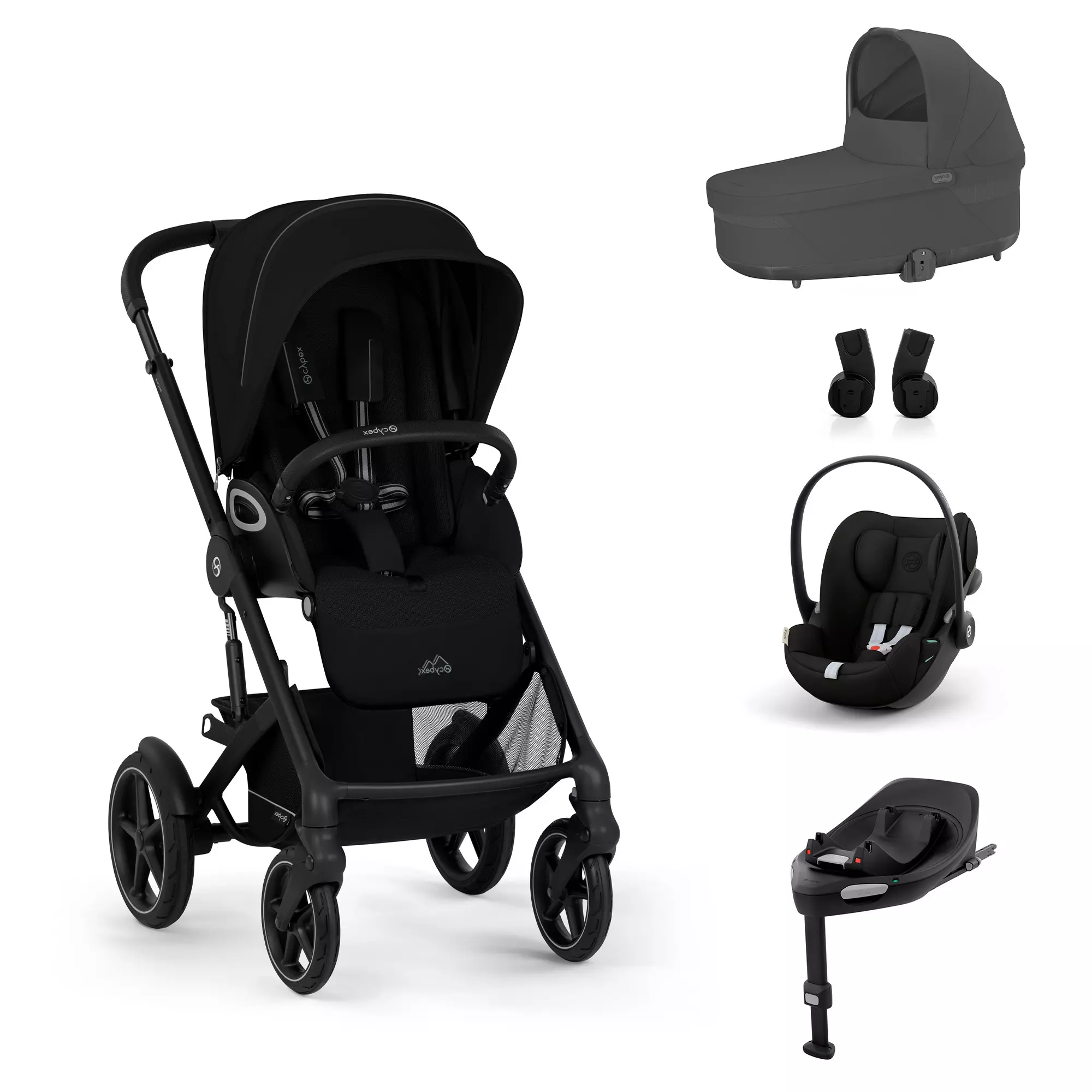 Cybex Talos S Lux starttipaketti sisältää Talos S Lux yhdistelmävaunut, jalkapeitteen ratasosaan, Cloud G turvakaukalon, Base G telakan, sekä adapterit, joilla kaukalon saa kiinitettyä rattan runkoon. Yhdistelmävaunuja voi käyttää vastasyntyneestä alkaen aina 22kg kiloon asti, ja ne tarjoavat mukavaa matkustamista minne menetkin. Talos S Lux rattaassa on tilava istuinosa, puhkeamattomat All Terrain -renkaat ja sen saa kasattua helposti yhdellä kädellä. Talos S rattaan kanssa pääset kulkemaan niin kaupungissa mukulakivillä kuin vaikkapa myös vaellusreiteillä. Talos ratasta on saatavilla neljässä eri tyylikkäässä värissä. Rattaassa on keinonahkaiset työntöaisa ja turvakaari. Rattaan mukana tulee yhteensopiva jalkapeite samassa värissä rattaan kanssa, joka antaa ylimääräistä suojaa säätä vastaan.