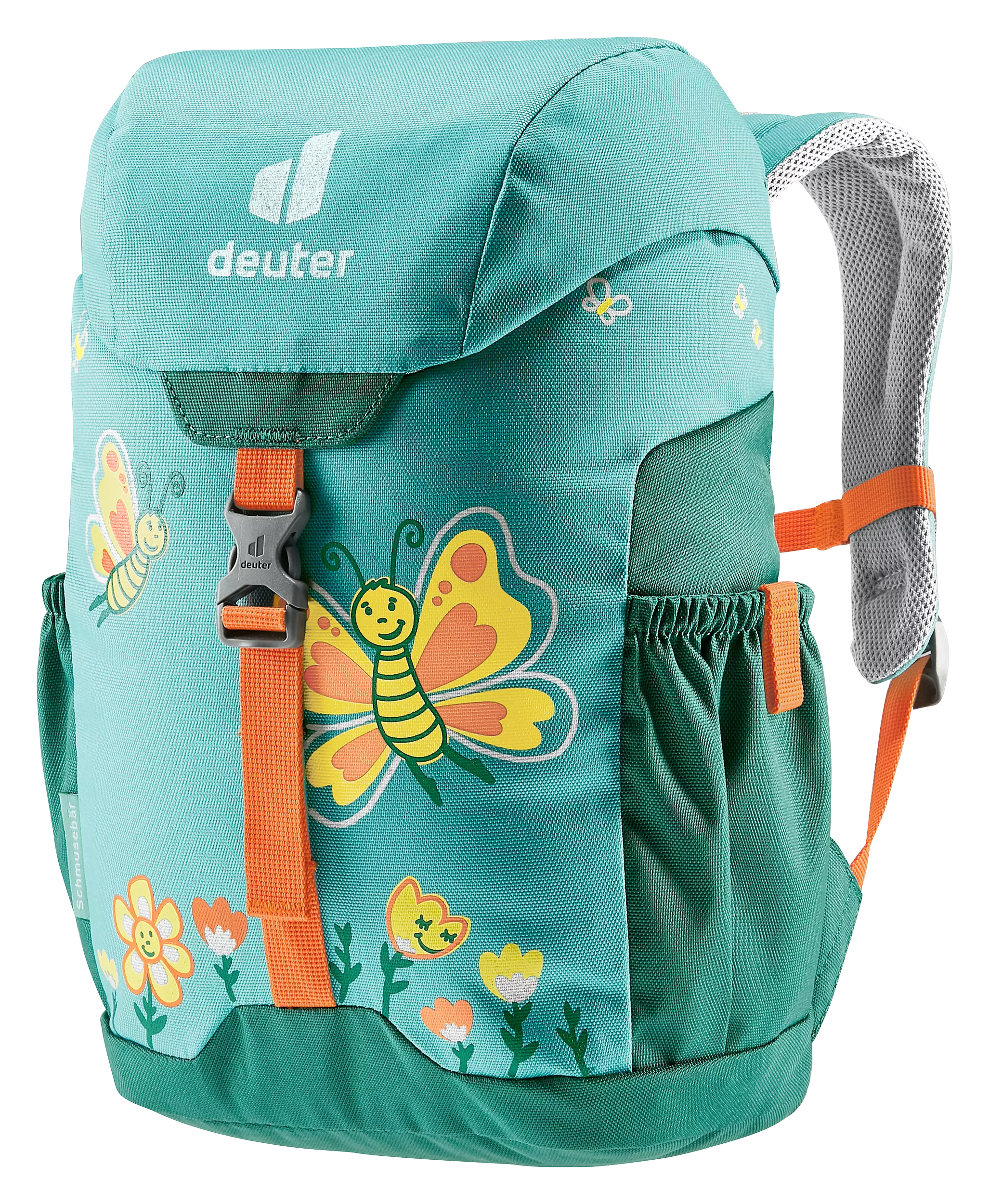Deuter Schmusebär lasten kerhroreppu on monipuolinen ja laadukas reppu lapselle mukaan esim. kerhoon tai päiväkotiin. Repussa on pehmustetut olkaimet ja selkäosa, joissa on käytetty hengittävää verkkokangasta. Pikalukollinen rintanauha estää repun valumisen lapsen hartioilta. Repun molemmilla puolilla on kätevät taskut, johon saa esim. juomapullon mukaan retkelle. Repussa on tilaa lapsen tavaroille, ja siinä on helppokäyttöinen kiristysnauha. Repussa on heijastinyksityiskohtia, jotta pimeälläkin liikkuminen on turvallista. Repun sisäpuolelle voi kirjoittaa nimen.