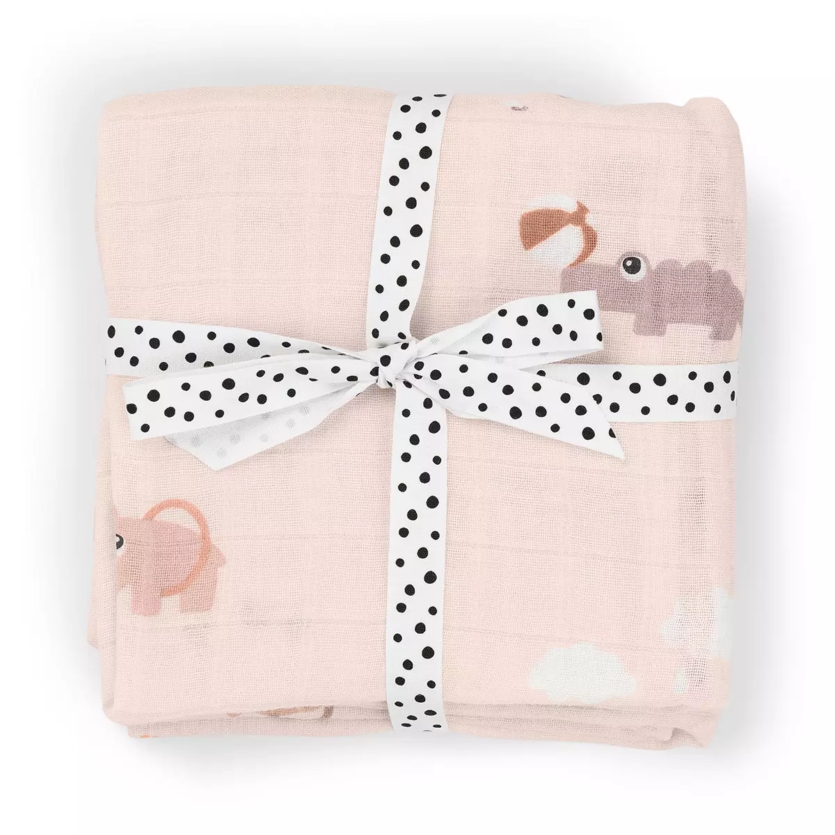 Done by Deer harsopaketti Playground Powder 2 kpl sisältää kaksi 70 x 70 cm kokoista harsoa. Vaaleanpunaisissa harsoissa on suloisia Done by Deer maskotteja. Pehmeät harsot ovat monikäyttöisiä... Lue lisää