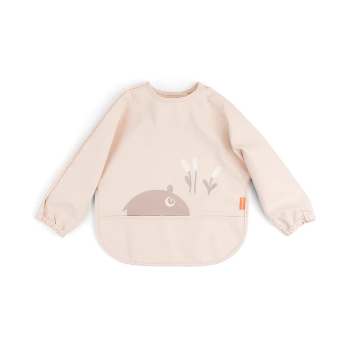 Done By Deer hihallinen ruokalappu Ozzo Powder suojelee lapsen vaatteita itsenäistä syömistä opetellessa. Ruokalappu on vedenkestävä, ja on helppo putsata kostealla rätillä. Tarvittaessa ruokalapun voi pestä myös pesukoneessa. Ruokalapussa on käytännölliset hihat, ja hihojensuissa kuminauhat. Ruokalappu saadaan suljettua ja avattua helposti niskassa olevan nepparikiinnityksen avulla.