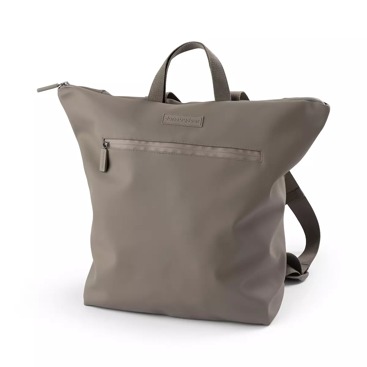 Done By Deer hoitolaukku on tyylikäs ja käytännöllinen. Laukku on valmistettu käyttäen kierrätettyjä muovipulloja. Tilavassa laukussa on seitsemän sisätaskua, sekä vetoketjullinen tasku ulkopuolella. Säädettävien olkainten ansiosta laukkua on mukava kantaa. Hoitolaukkuun kuuluu taitettava ja vedenkestävä hoitoalusta.